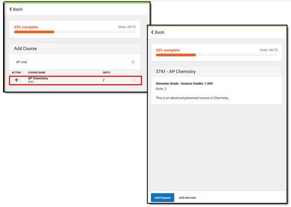 - Return to the Add Course screen by clicking Back.