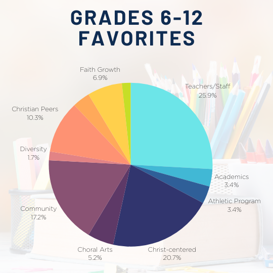 My students love the staff. They are honestly excited and happy to come to school every single day. They feel like this is their home away from home. They feel comfortable and safe knowing that the people teaching them look to Christ and the Bible first.