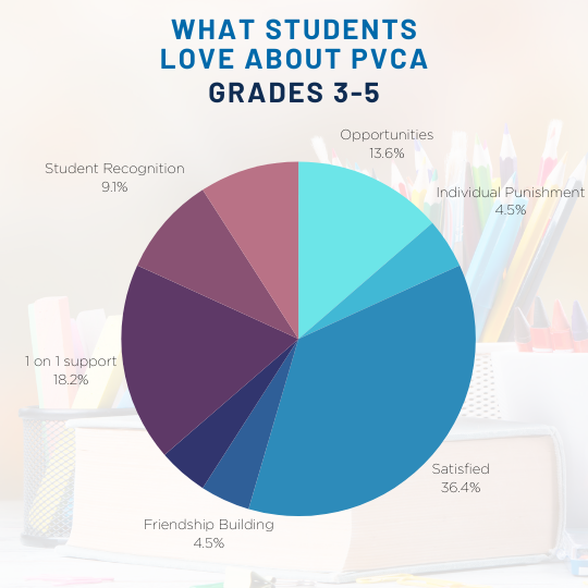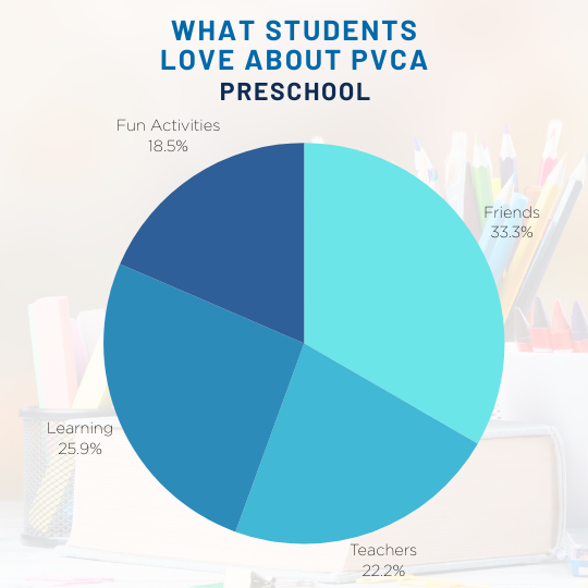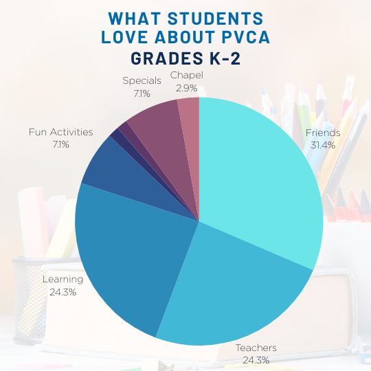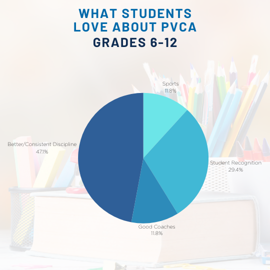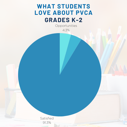 Thank you to everyone who participated in the 2023 parent survey! Your feedback is important, and we are grateful for what you shared with us. As we continue to grow and improve the student experience at PVCA, we depend heavily on hearing from you about how your children are growing and learning in our school. With this information, we can more successfully implement strategies that help us to fulfill our mission and serve well the needs of our students and families.