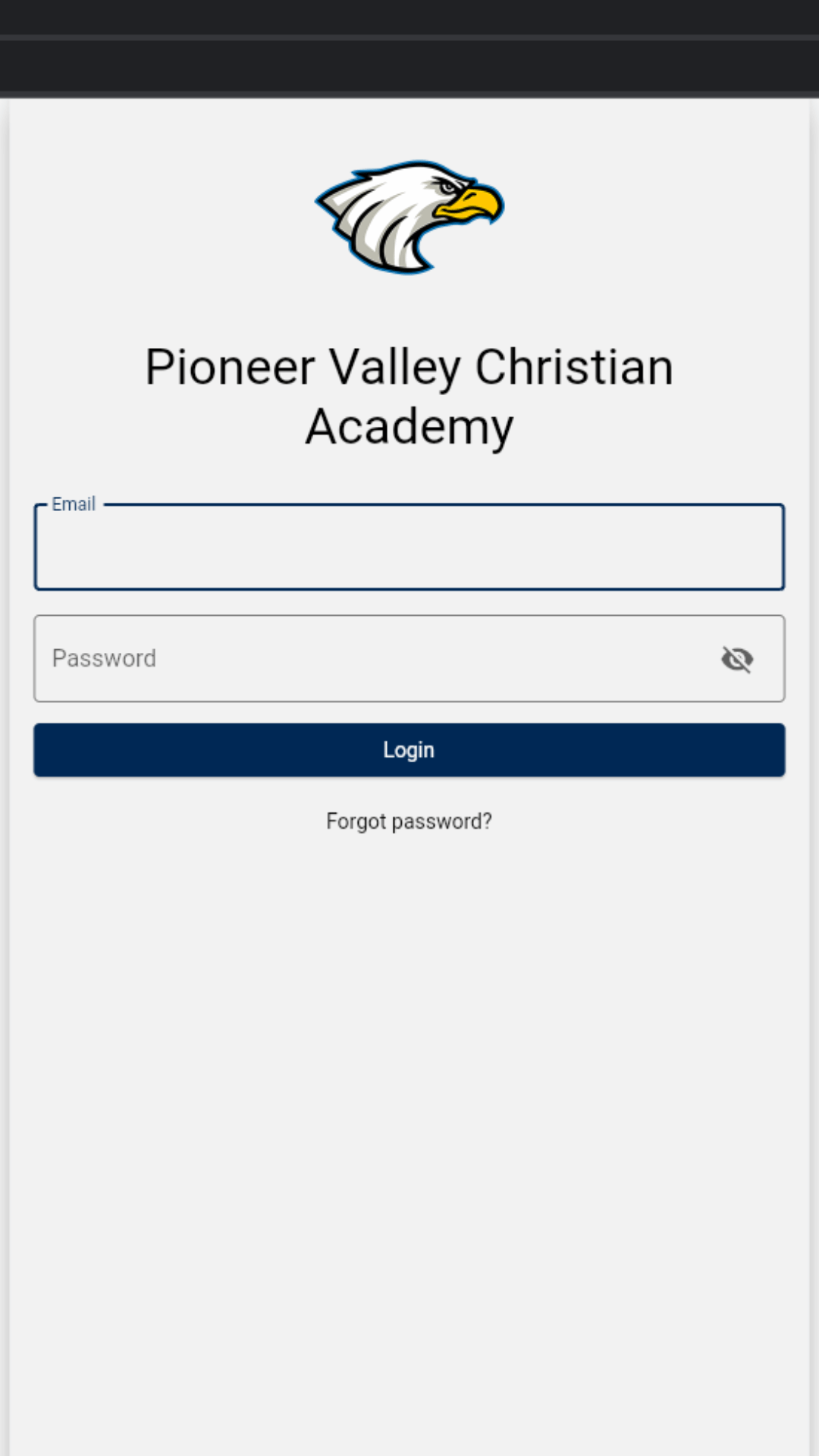 Once you have downloaded the Pioneer Valley Christian app, you will be asked to login with the username and password you created.