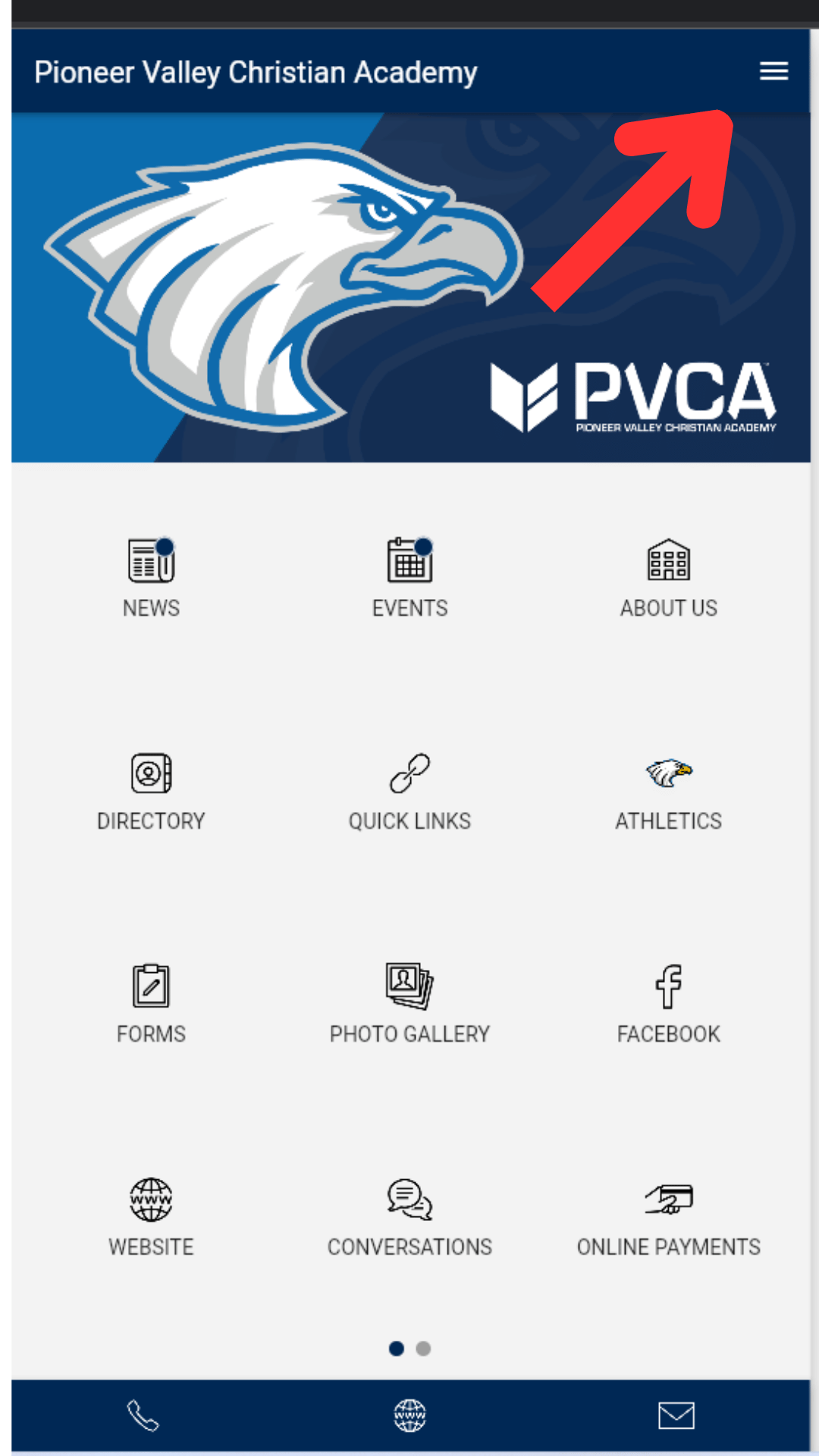 Our school app is your go-to resource for important updates, event calendars, forms, online payments, Eagle Café ordering, announcements, and more. You can download it for FREE from the App Store or Google Play by searching for “Pioneer Valley Christian” App. Once installed, be sure to enable notifications to receive timely alerts (See below for more instruction). Questions or concerns, contact Claudia Sermiel, in the main office or email csermiel@pvcama.org.