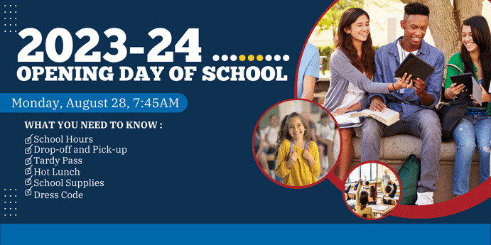 Students will use the entrance under the awning by the cafeteria. One parent is permitted to escort preschool and kindergarten students into the building.