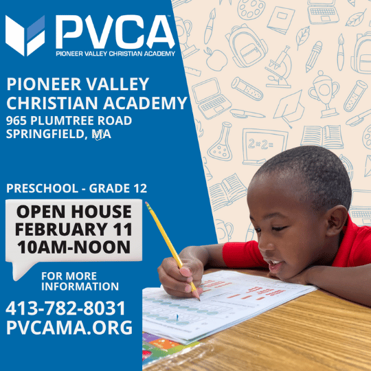 ATTENTION PVCA Families. PVCA will be hosting an Open House for prospective families. If you know of a family interested in touring PVCA’s campus, please pass this information on to them via social media, text, or email. Private tours are always an option and can be booked by calling 413-782-8031. Thank you!