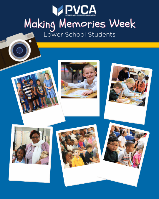 Making Memories Week at Pioneer Valley Christian Academy is a week-long event for lower school students. Stay tuned for this year’s agenda!