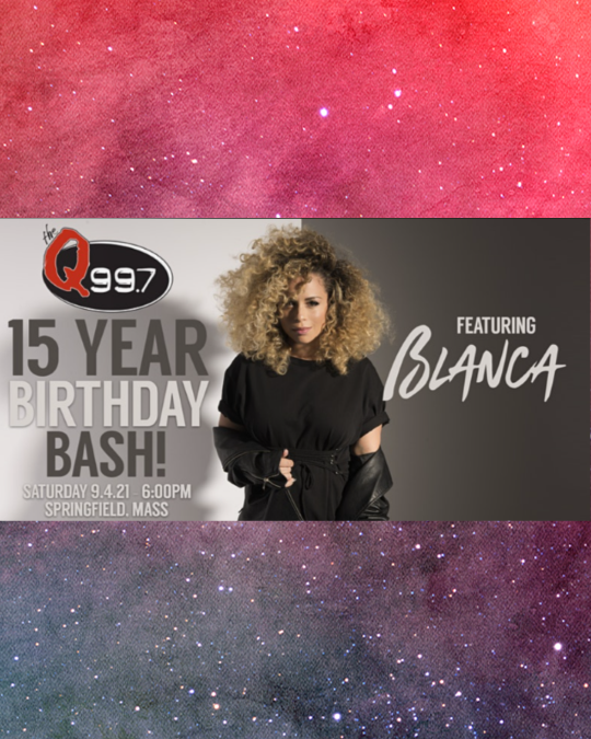 The Q 99.7 is thrilled to announce that Blanca will be in Springfield to entertain you and your family! Join us as we celebrate our 15th birthday! It’s The Q 99.7’s 15 Year Birthday Bash with Blanca in coordination with RWC (Restoration Worship Center)! Saturday September 4th at 6:00 pm at Pioneer Valley Christian Academy. Don’t wait…tickets will sell out quickly just like last time! Reserve your spot NOW!
