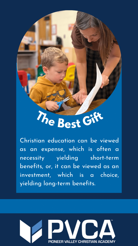 Christian education can be viewed as an expense, which is often a necessity yielding short-term benefits, or, it can be viewed as an investment, which is a choice, yielding long-term benefits. Our children are our greatest gifts from God – our greatest treasure. We have only one opportunity to rear our children; there are no second chances. Christian education focuses on an eternal investment, not just academics, thus making it a worthwhile investment.