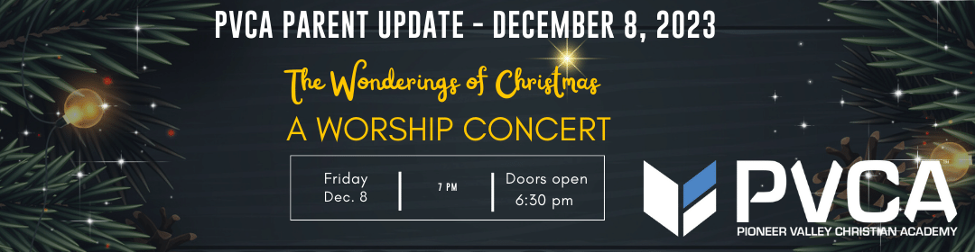 Join the upper school choirs for a Christmas-themed worship concert. Doors open at 6:30PM. Concessions will be available, and 100% of the proceeds will benefit the PVCA Arts Program.