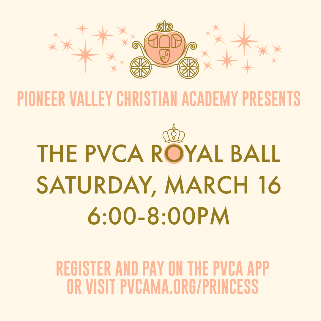 The annual PVCA Royal Ball is just around the corner. This event is open to the public so feel free to invite a family member, friend, coworker, or neighbor. Tickets are $30 for one dad/escort and one princess. Each additional princess is $10. Click on the link below to register and pay OR open your PVCA App and open the FORMS icon to register. To pay in the app, click on ONLINE PAYMENTS.