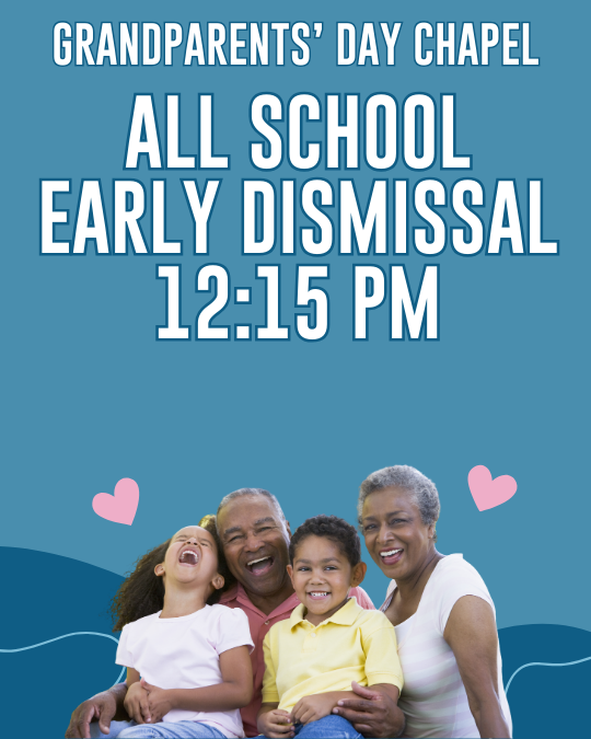 Pioneer Valley Christian Academy will host a Grandparents’ Day Chapel on Friday, October 6. Doors will open at 10:30AM. Refreshments will be served from 10:30-11:00AM followed by a chapel honoring grandparents. The chapel will consist of student-led music, student presentations, and a message from Brad Evans. School will be dismissed early at 12:15PM for ALL students. Early dismissal will allow visiting grandparents or special friends to spend the remainder of the afternoon with their PVCA grandchildren or special friends.