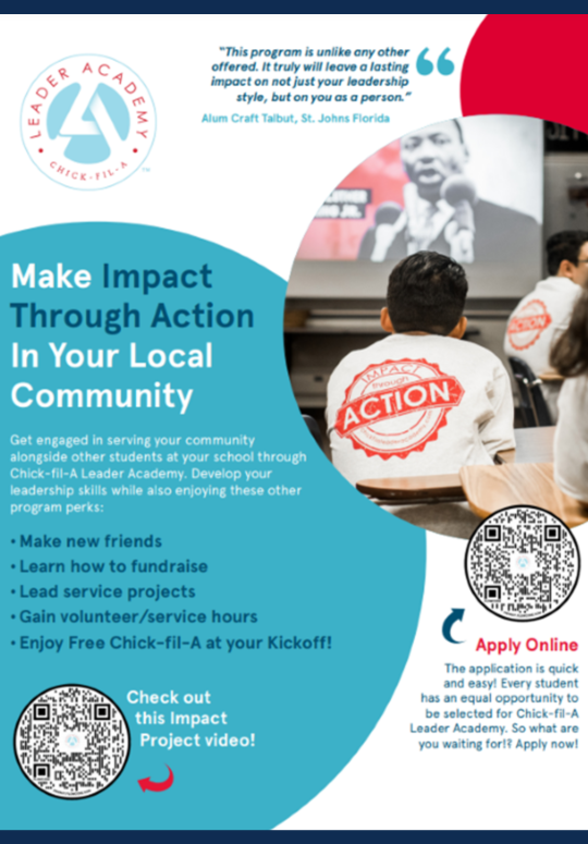 Chick-fil-A Enfield has graciously donated the funds needed for PVCA students to participate in the Chick-fil-A Leadership Academy. Students in grade 9-12 may participate. If interested in this unique opportunity, contact Caroline Funchion, cfunchion@pvcama.org or text 617-957-1214.