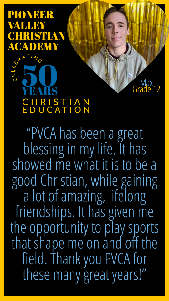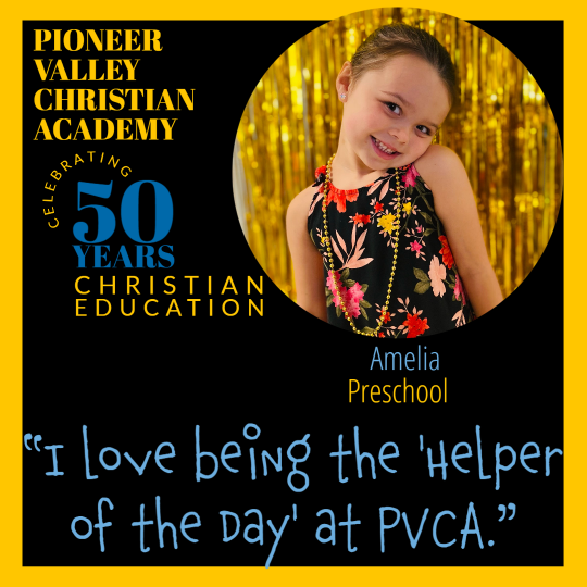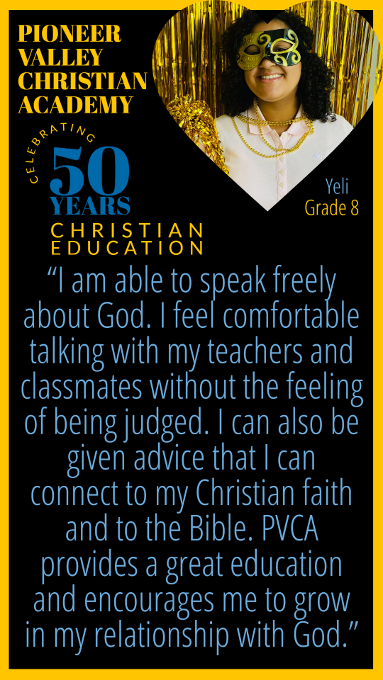 Pioneer Valley Christian Academy will be closed for winter break beginning Monday, February 21, through Friday, February 25. School will resume Monday, February 28, 7:45 AM.