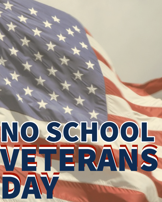 School will be closed on Thursday, November 11, in observance of Veterans Day. School will also be closed on Friday, November 12, for a teacher professional morning and afternoon parent teacher conferences. School will resume on Monday, November 15, 7:45 AM.