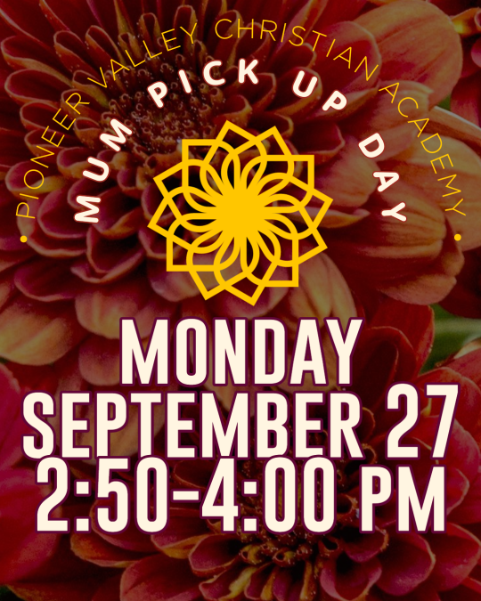 Mum pick-up day will be Monday, September 27, between 2:50-4:00 PM.