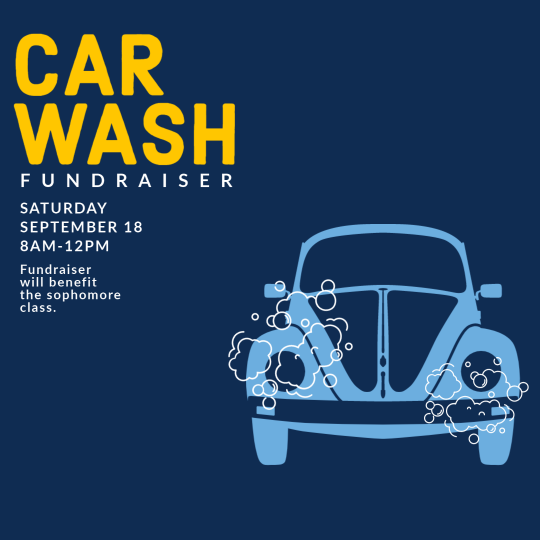 Stop by PVCA on Saturday, September 18, between the hours of 8:00 AM – Noon and have your car washed by the sophomore class.