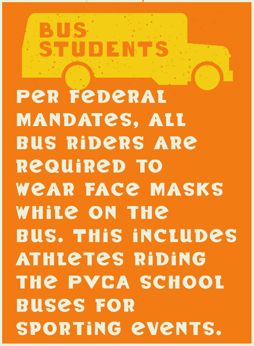 Per federal mandates, all bus riders are required to wear masks. This includes athletes riding the PVCA school buses to sporting events.