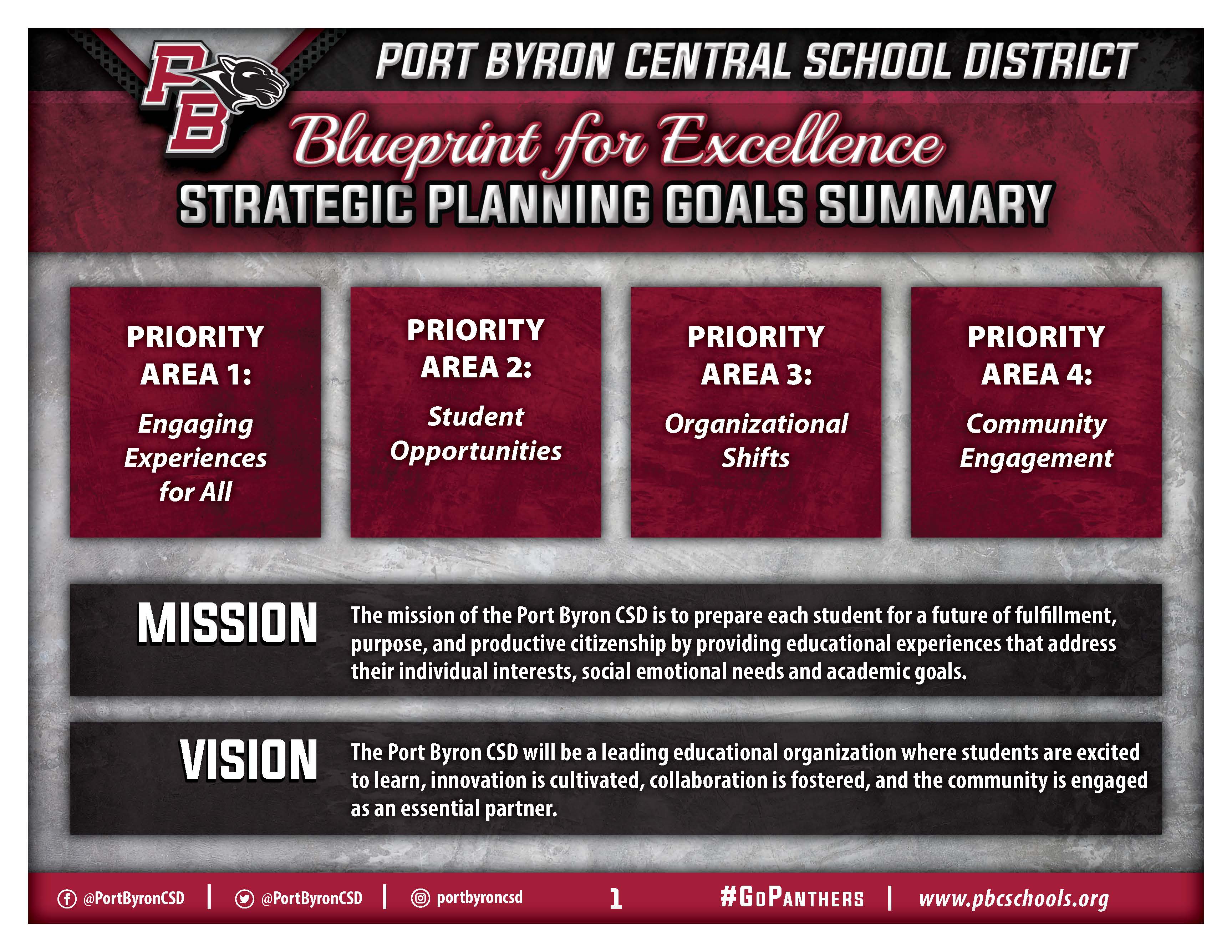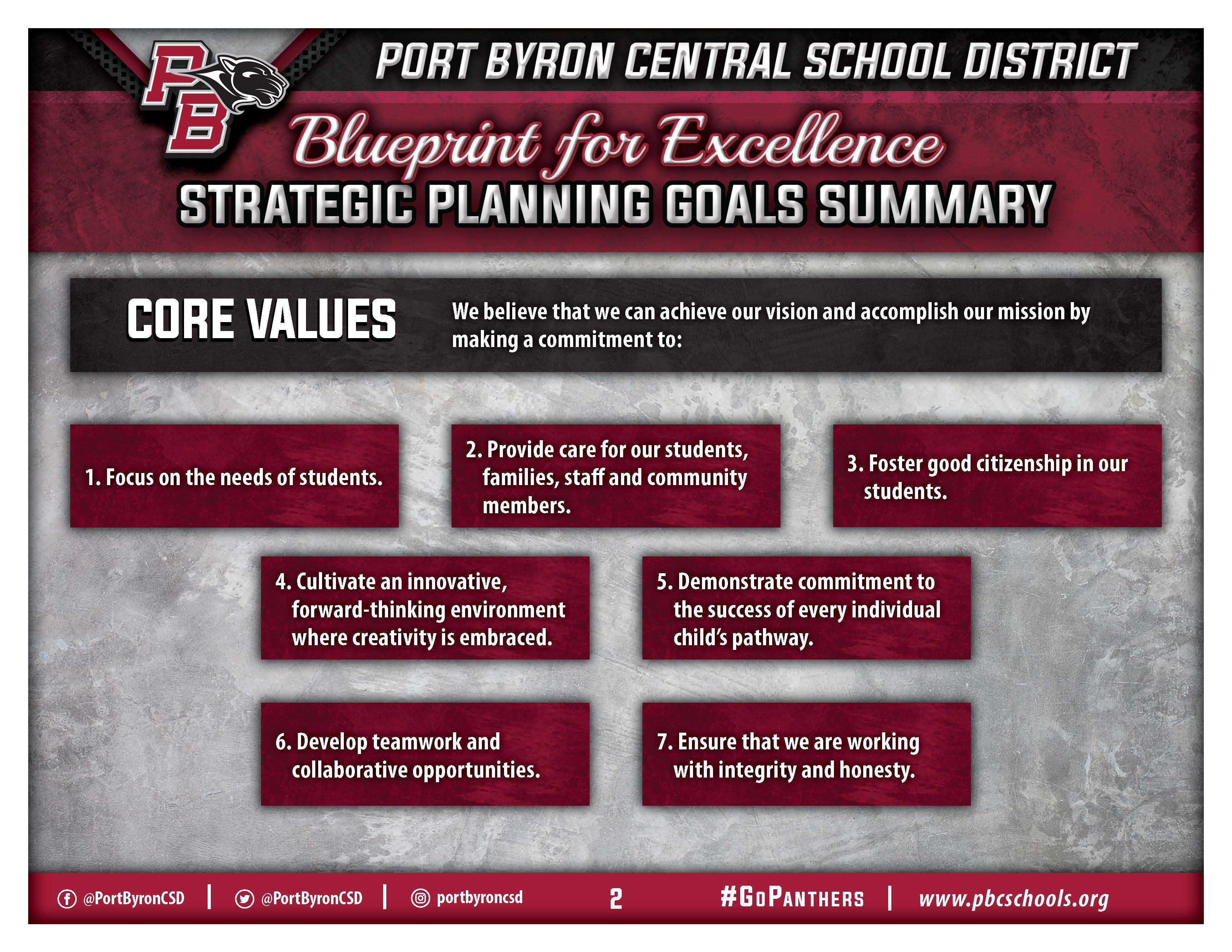 Our “Blueprint for Excellence” is the result of planning sessions that were held with our Board of Education, Leadership Team, staff, parents and community members. We worked with feedback gathered from the community this past fall as we developed a plan that will help us continue to grow and achieve as we strive for excellence in all that we do.