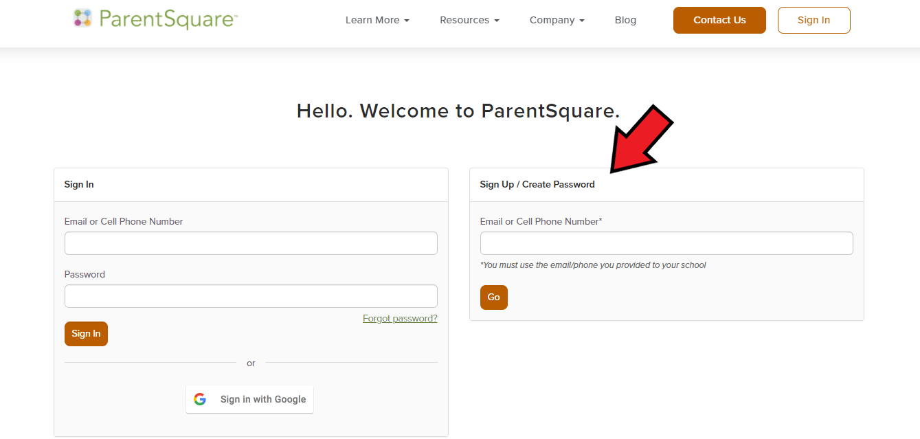 - Go to www.parentsquare.com/signin and enter your email that is on file with the district to receive a new invitation link. See image below: