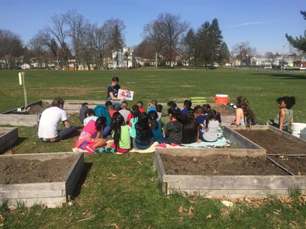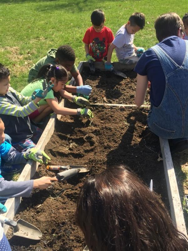 Getting the Krieger Garden ready for planting in the Spring- Donna Burke's First Grade Class
