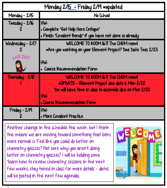 INTERNAL LINK Agenda 2/15 - 2/19