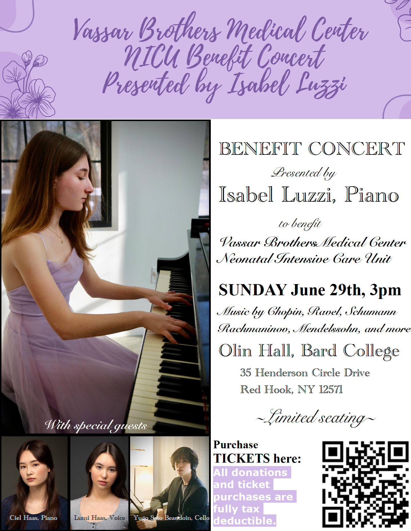 Vassar Brothers NICU Benefit Concert Presented by Isabel Luzzi - Olin Hall - June 29, 2025