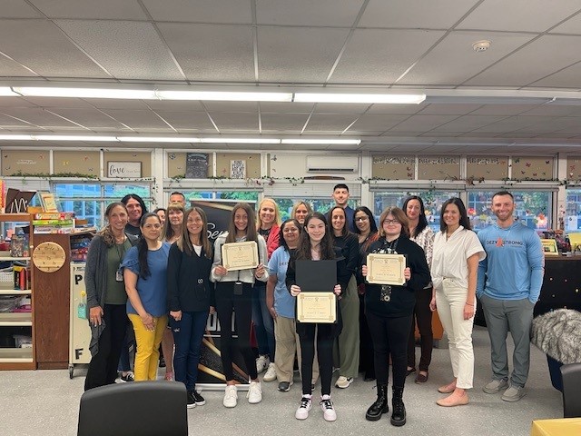 A special recognition was given to Dianne McDonough and Michelle Kasten, school nurses at Seneca Middle School, for their swift and heroic response to a medical emergency. When a staff member experienced a serious health incident during the school day, the nurses immediately rushed to their side and began administering CPR. Their quick action and professionalism were critical in ensuring the safety and well-being of their colleague, and they were applauded for exemplifying the very best of Sachem’s staff.