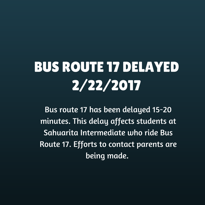 SIS BUS ROUTE 17 DELAYED 2.22.17