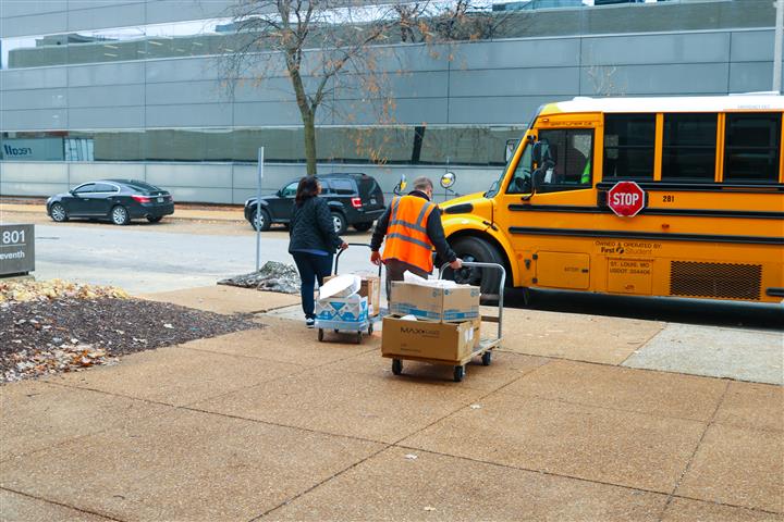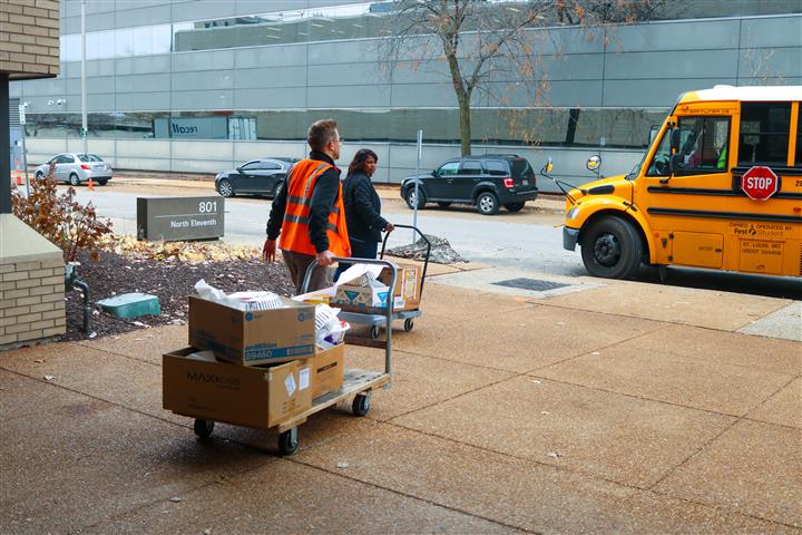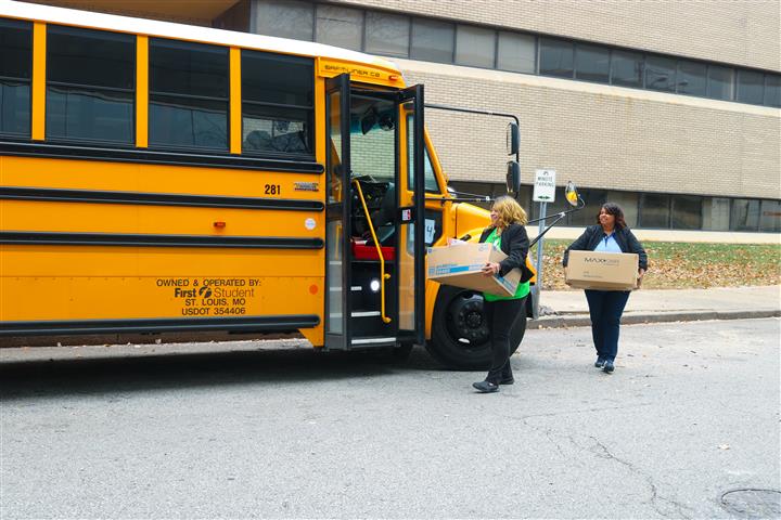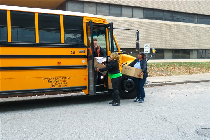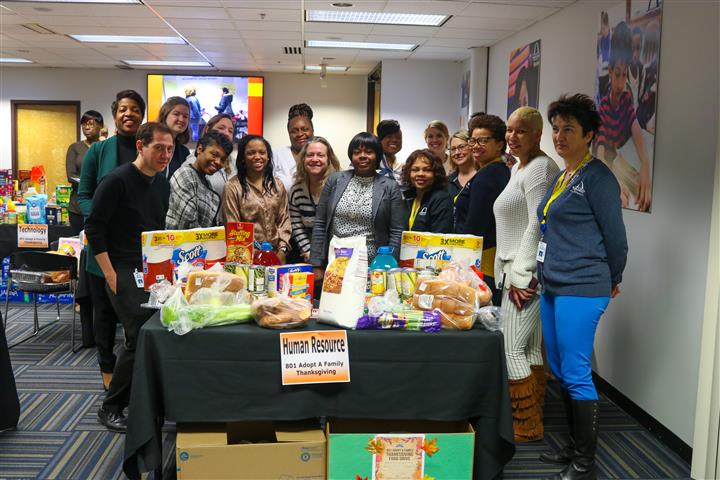 Nov. 26, 2019 – For the sixth year, the Students in Transition (SIT) office of Saint Louis Public Schools (SLPS) organized a donation drive to help more than 75 local families with food items for Thanksgiving. The effort included donations from various Central Office departments, Mallinckrodt Academy of Gifted Instruction’s PTO and individual contributions from friends of the District totaling more than 2,000 items. Deidre Thomas-Murray, Director of the SIT office, knows first-hand what it feels like to be in need. “Hurricane Katrina left me homeless, but not hopeless,” the New Orleans native remembered. “I was always able to lean on support from the charity of people who cared. It’s why organizing events like this is very important to me.”