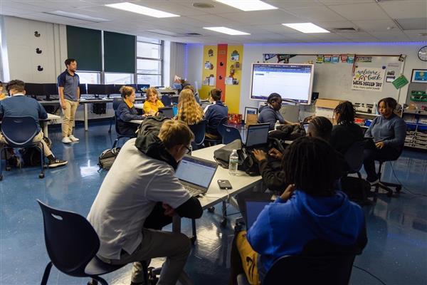 Outside of our academic coding classes, many of our students choose to participate in extracurricular coding activities. This includes competing in World Wide Technology's yearly hackathon, where students create an app, from the ground up, that helps to solve an issue in their community. Collegiate won the hackathon in 2018, and received $10,000 for the school for their School Choice App.