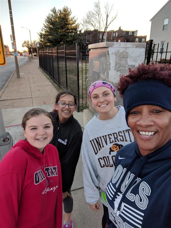 In Students on the Go!, students train to run the Go! St. Louis half-marathon in April. Beginning in November, the club logs miles together after school and on Saturday mornings to prepare to finish the big race. The focus of the program is to use running as a way to promote life-long health and fitness, the satisfaction of setting a goal, putting in the work to accomplish it, and seeing the results.