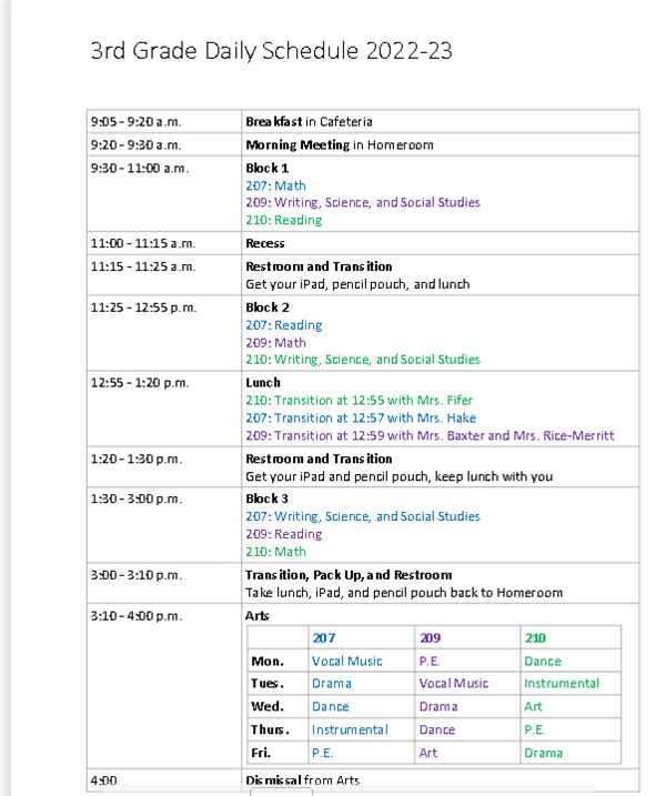 Mrs. Fifer's Homeroom Schedule