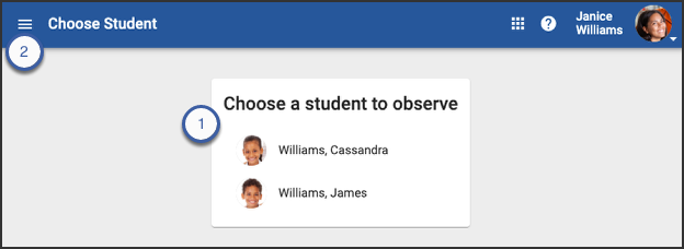 - When you sign in as an Observer, you are asked to select the student profile you want to access.