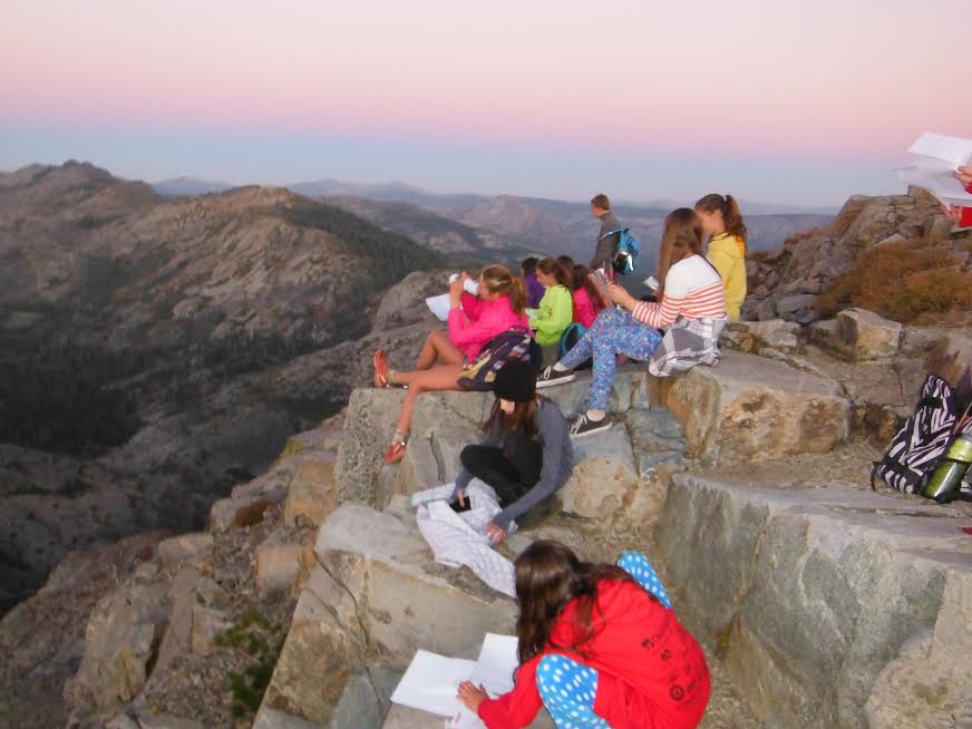 On the second day, students participated in a scavenger hunt using compass bearings from known landmarks. Students experienced many successes and failures, and also showed great strength in overcoming obstacles. We ate great meals (french toast for breakfast and pasta for dinner, all prepared by students) and finished our day by enjoying the sunset, writing, and debriefing by the fire tower.