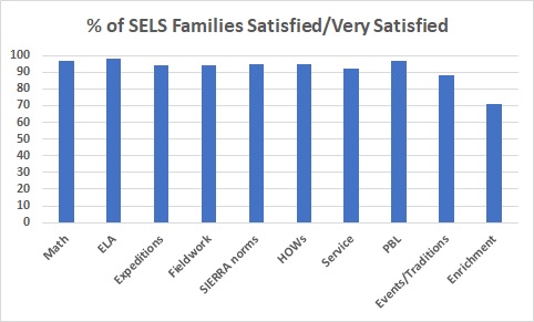 This data was similar to, and even a little better than, data from an earlier survey in March ’15, which seems to indicate our continued path towards excellence. In the ’15 survey, when asked why families choose SELS, “mission/philosophy”, “curriculum”, “character education”, and “relationship with Expeditionary Learning” (EL Education’s prior name) all had an influence of “quite a bit” or “very much” in 85% or greater of respondents.