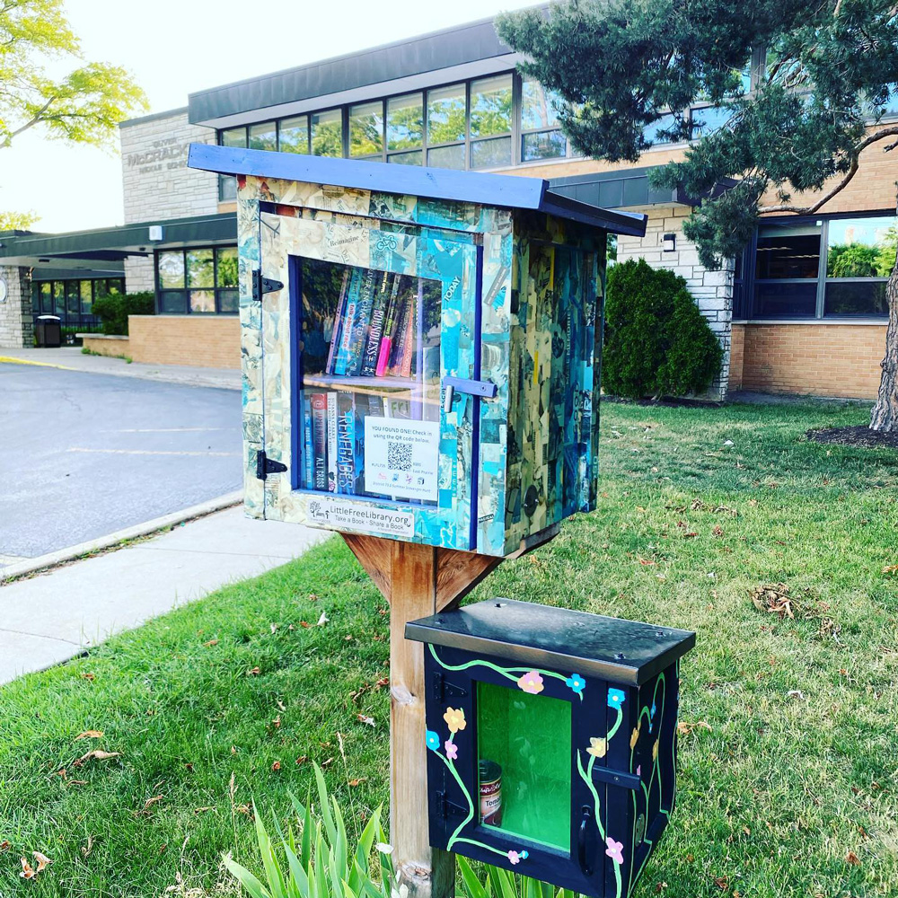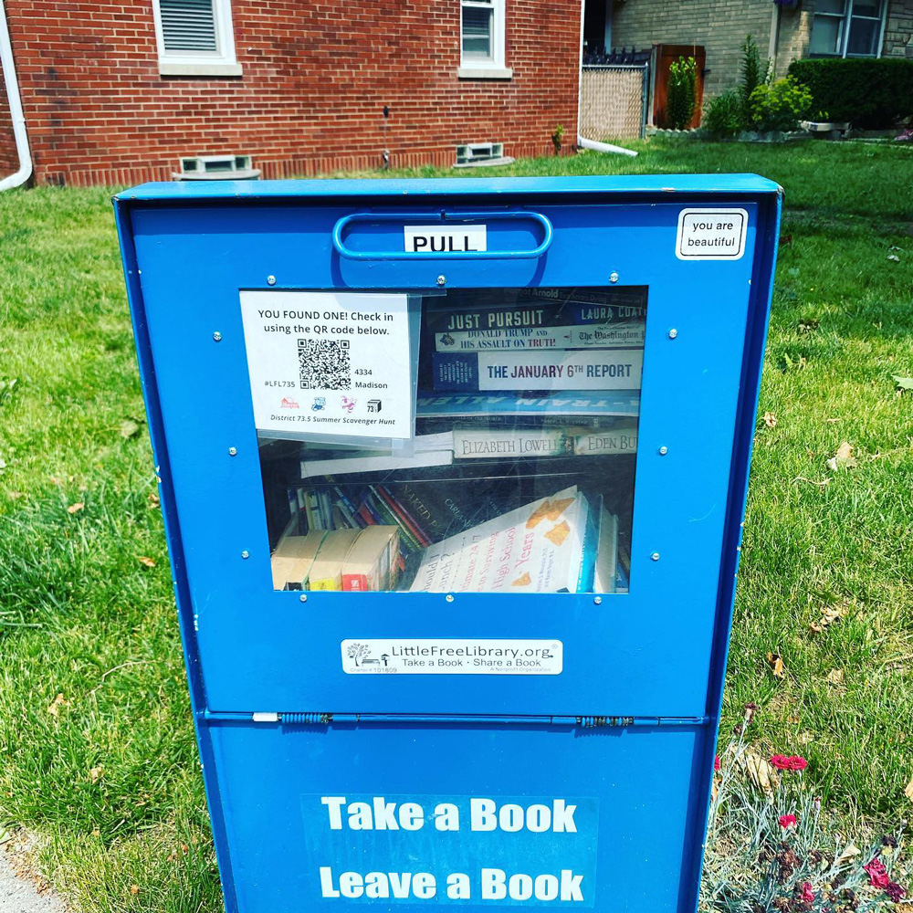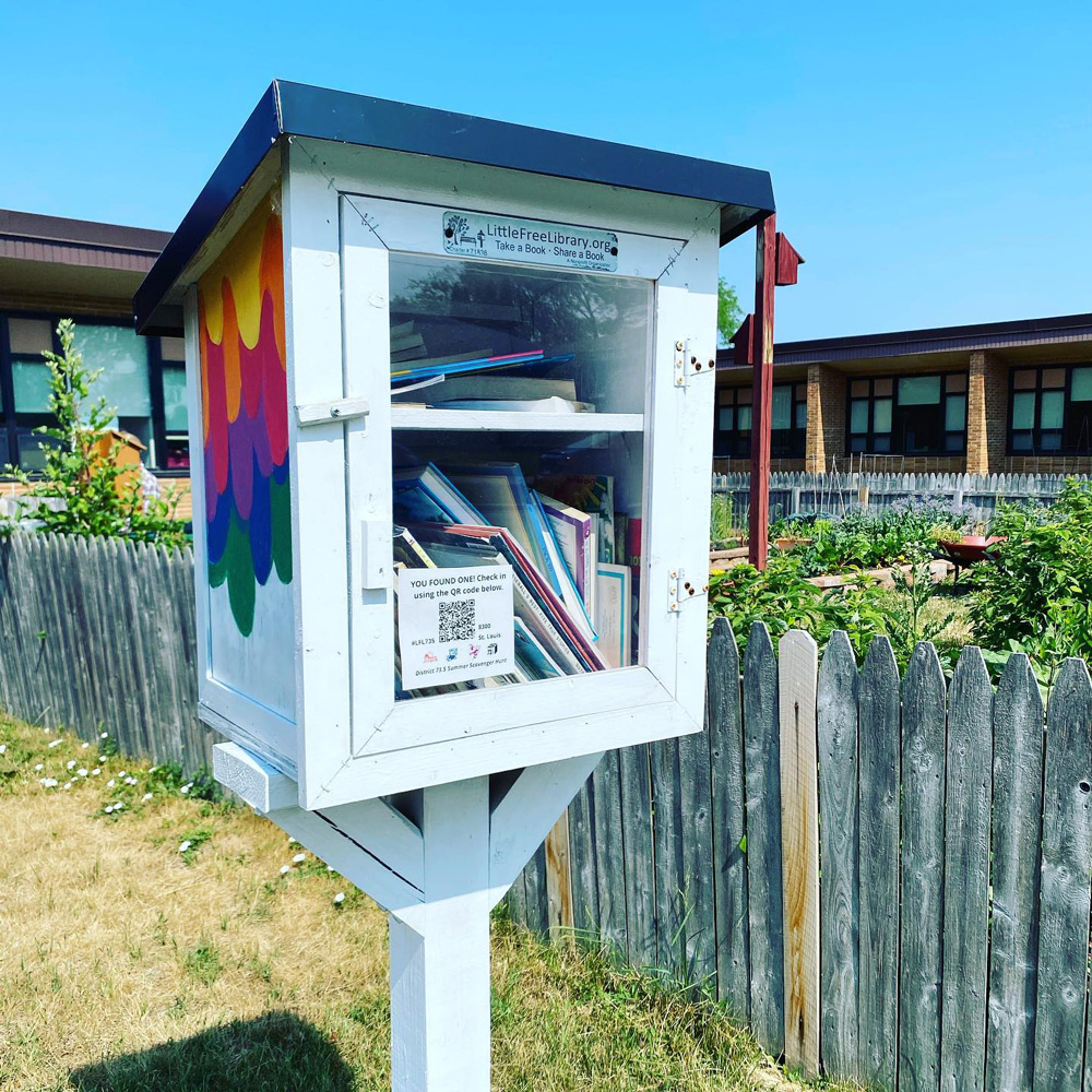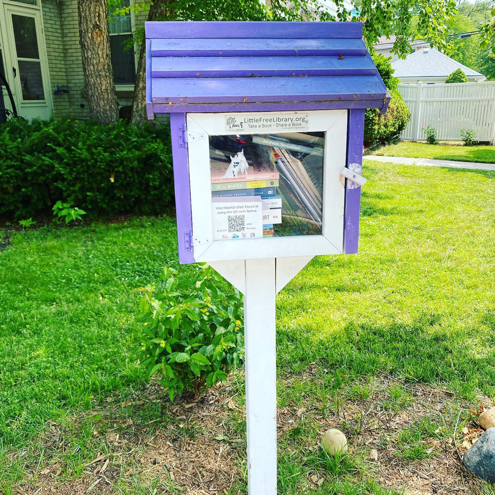 I had a blast on the Little Free Library Scavenger Hunt! I bet you will too! I meandered through our neighborhood looking for all the LFLs. I wandered down blocks I had never seen before. I discovered two LFLs shaped like the houses they stood in front of and learned that they were made by the same person — the grandfather of students in our schools! I was even dive-bombed by a redwing blackbird on my adventures, but it was worth it to get snapshots of all 16 Little Free Libraries in our little school district! ~ Mrs. Haggerty