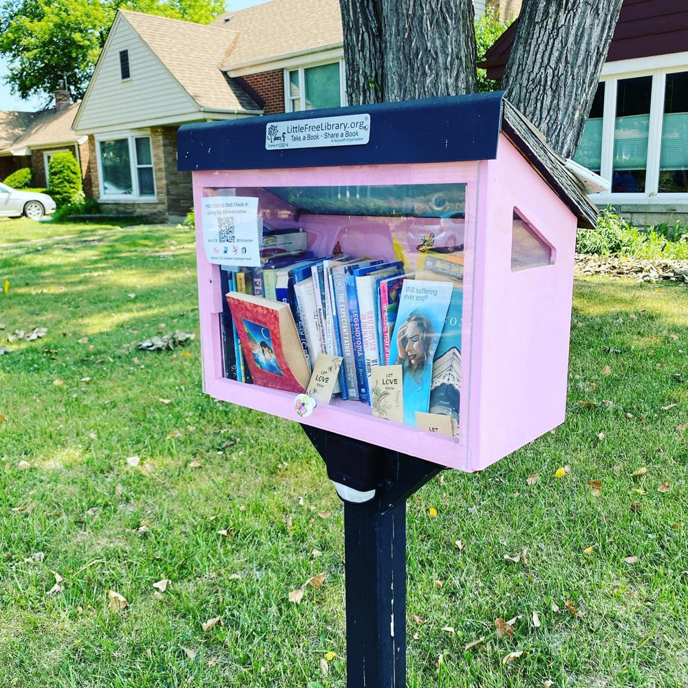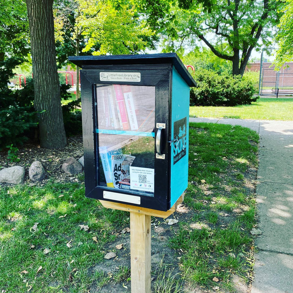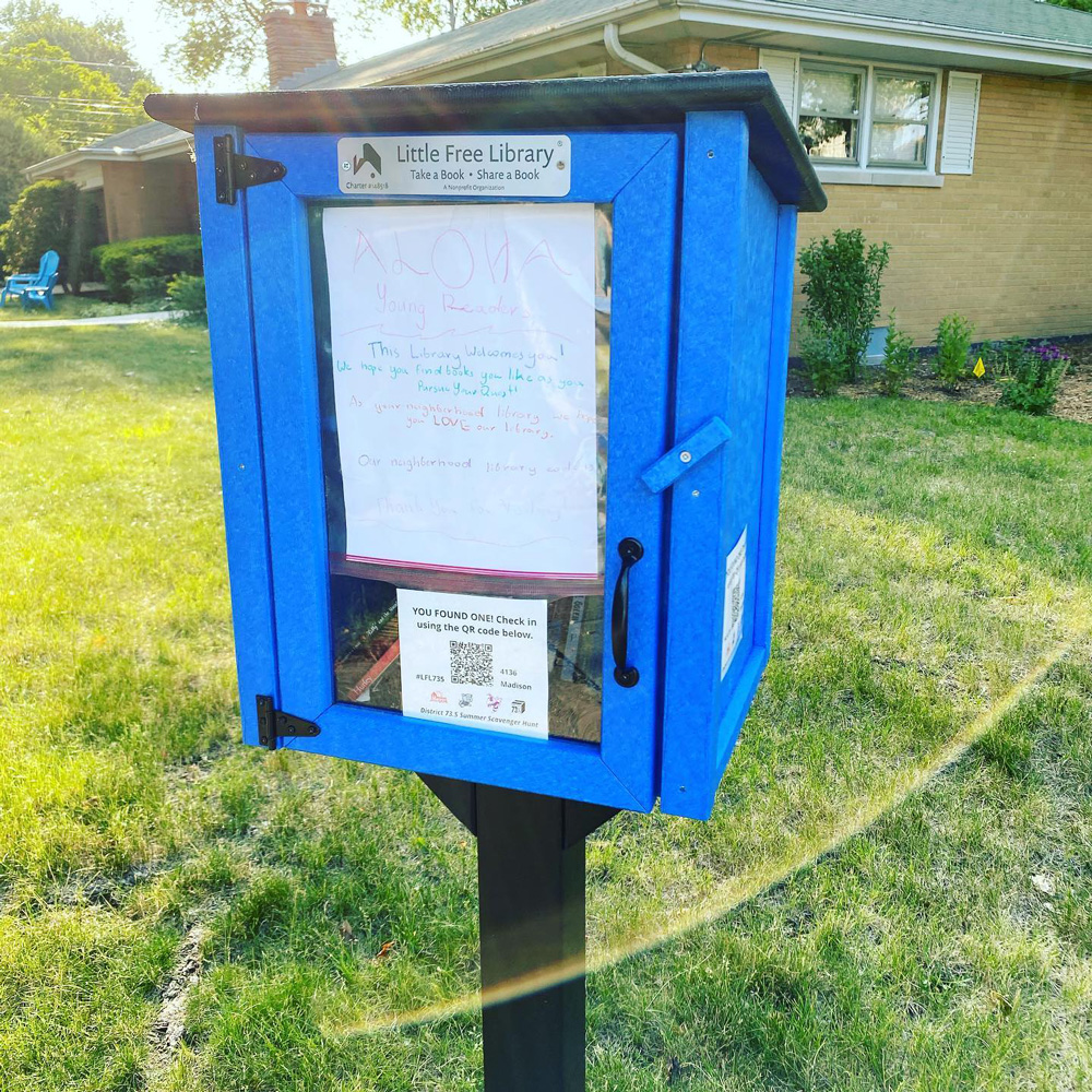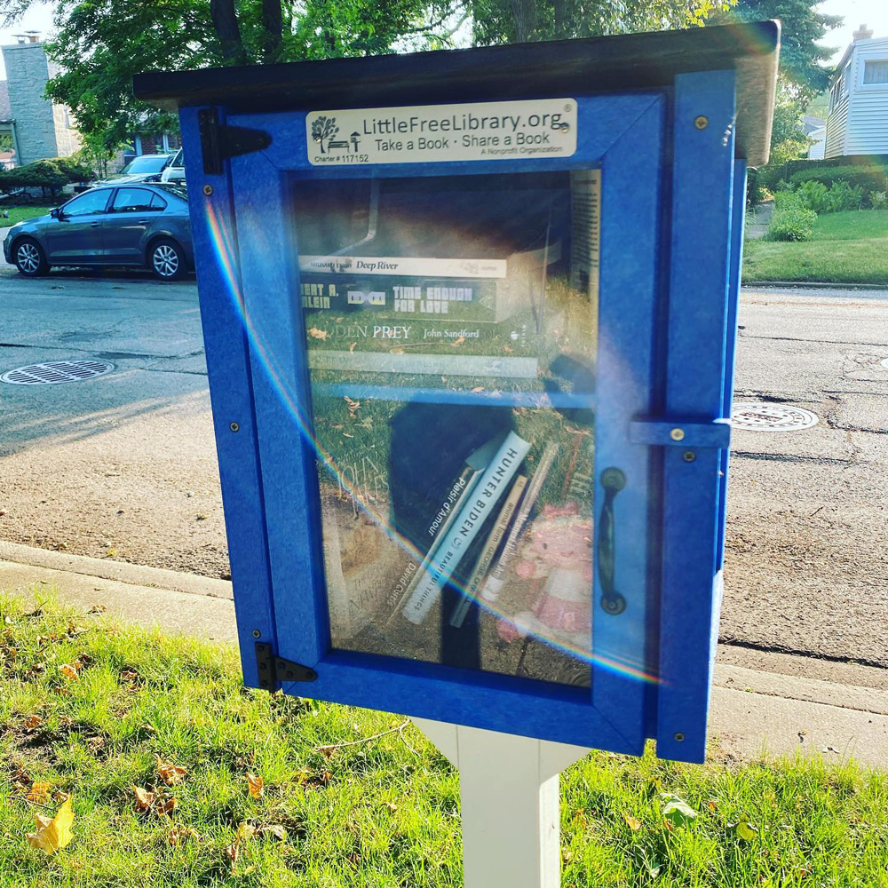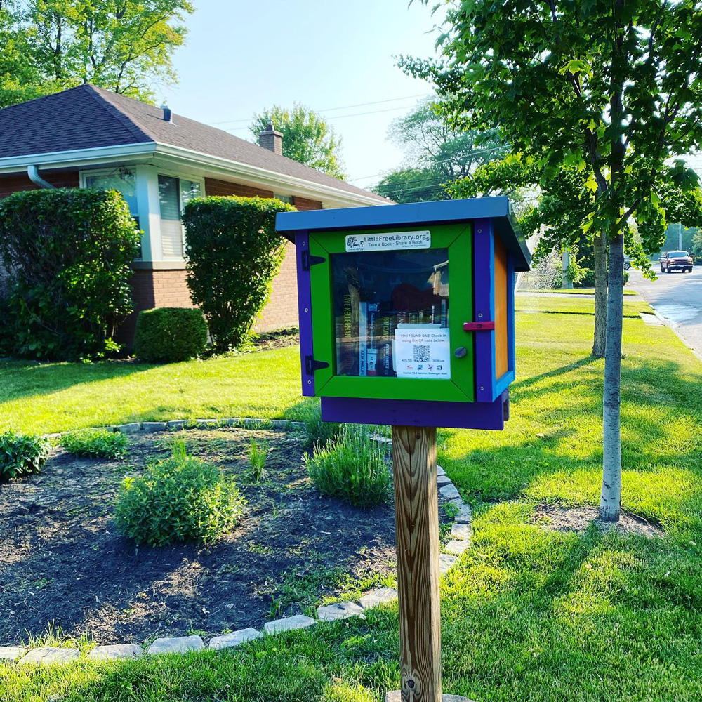 I had a blast on the Little Free Library Scavenger Hunt! I bet you will too! I meandered through our neighborhood looking for all the LFLs. I wandered down blocks I had never seen before. I discovered two LFLs shaped like the houses they stood in front of and learned that they were made by the same person — the grandfather of students in our schools! I was even dive-bombed by a redwing blackbird on my adventures, but it was worth it to get snapshots of all 16 Little Free Libraries in our little school district! ~ Mrs. Haggerty