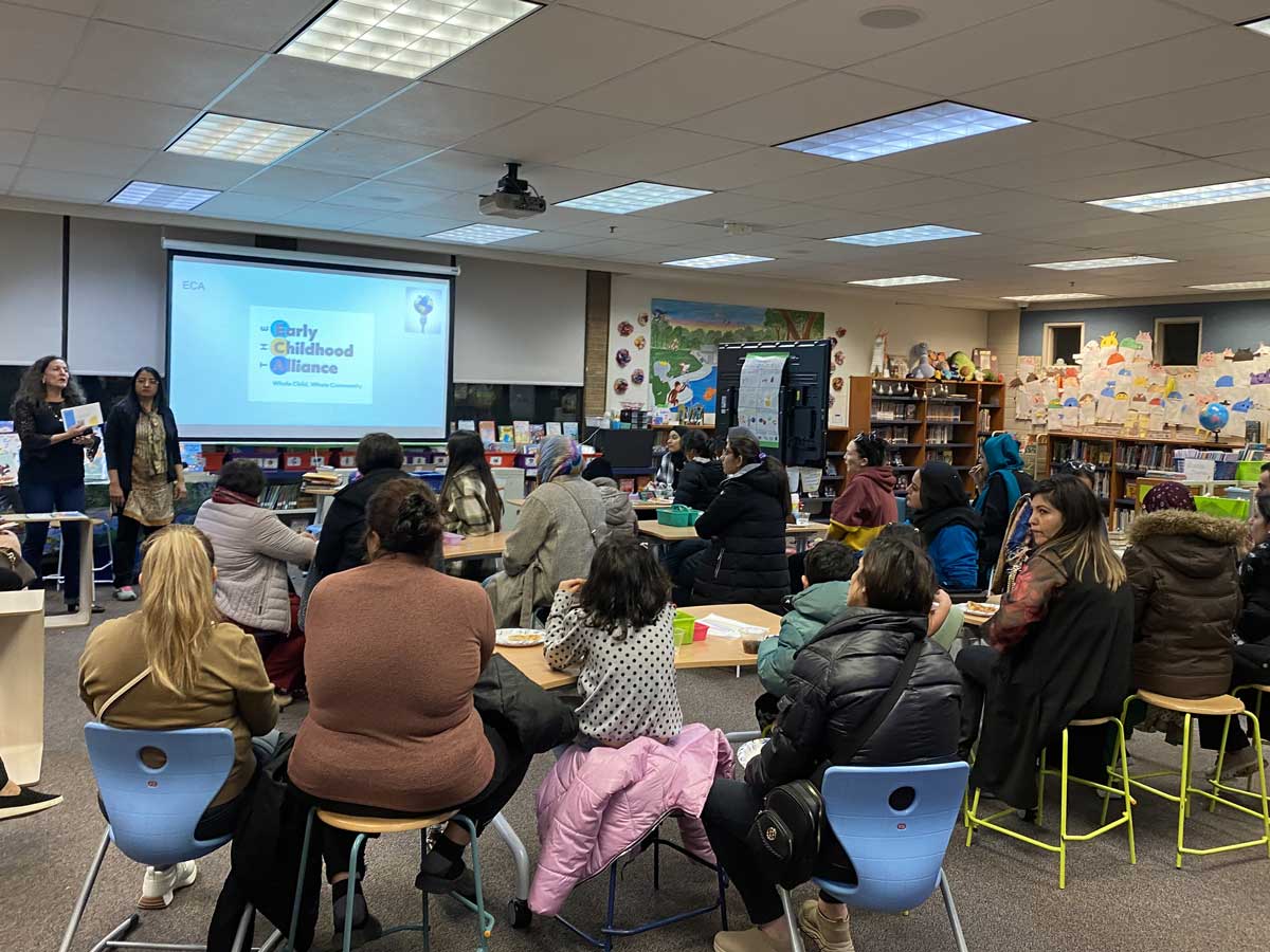 Families, staff, and special guests gathered in the Middleton library on Thursday, February 8th for a meeting of the Bilingual Parent Advisory Committee (BPAC). Representatives from The Early Childhood Alliance discussed the importance of literacy in our first language and shared resources, music, and books that build Urdu literacy and vocabulary skills.