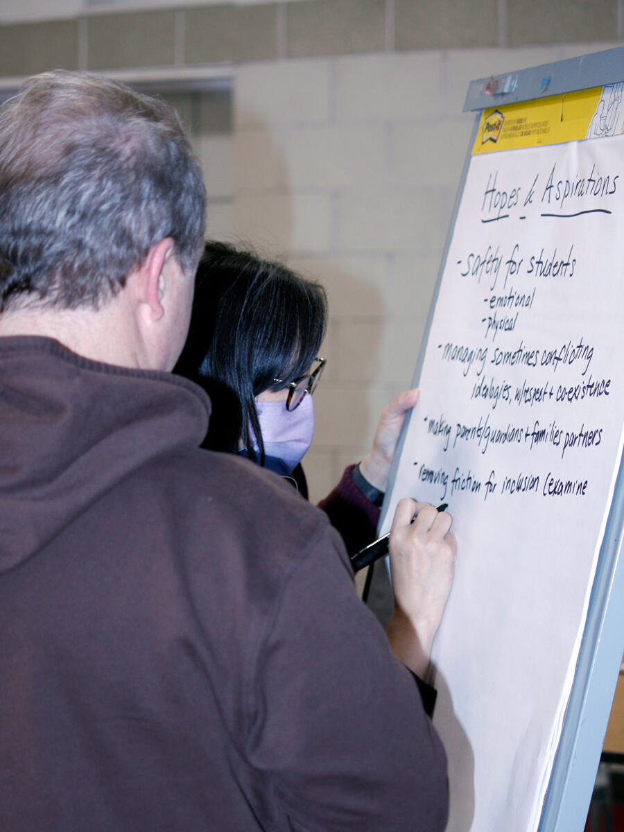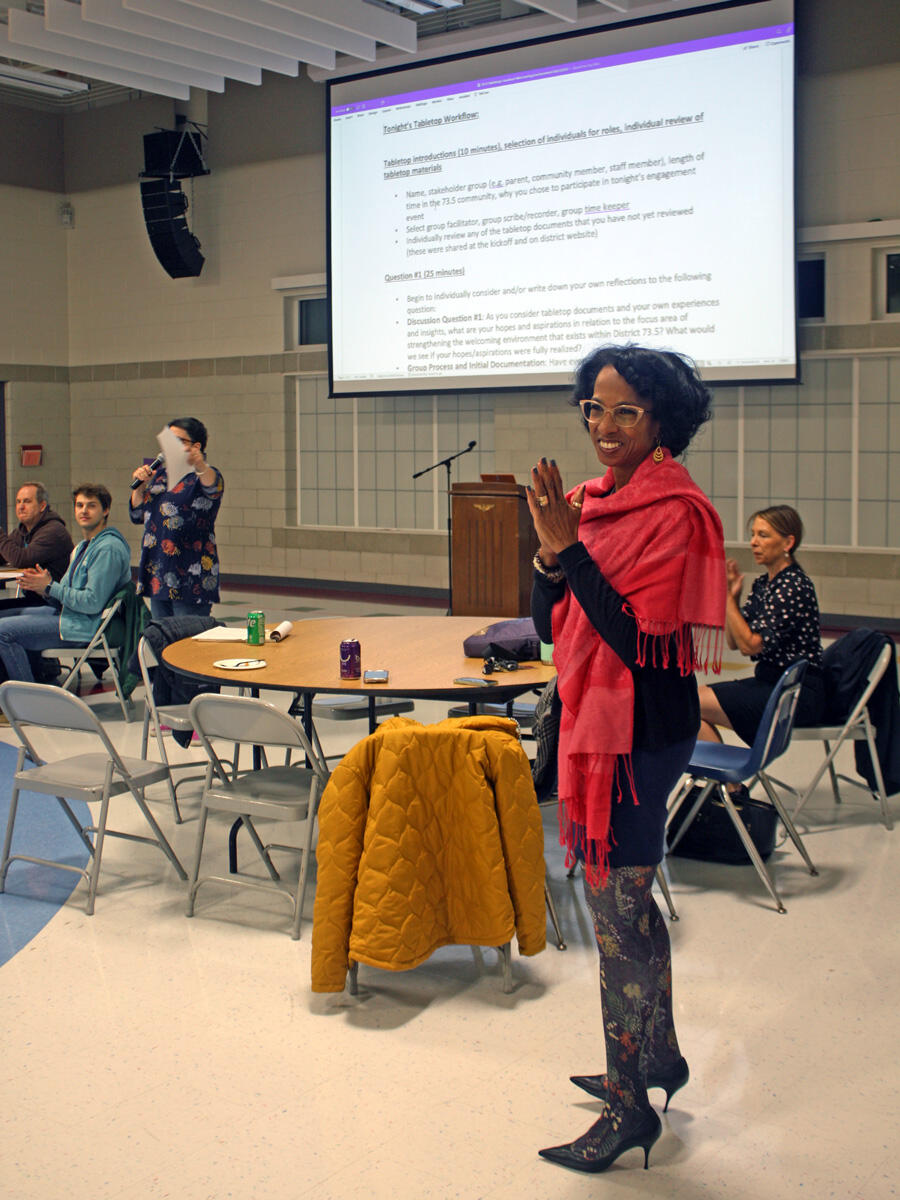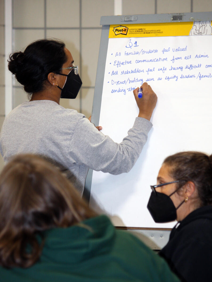 The evening was facilitated by Dr. Shelby Cosner, a Professor and Director of the Center for Urban Education Leadership at the University of Illinois-Chicago. Participants gathered in mixed tabletop groups and spent time getting to know others at their table and in the room. The groups then shared and discuss ideas from different vantage points.
