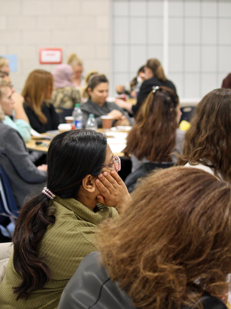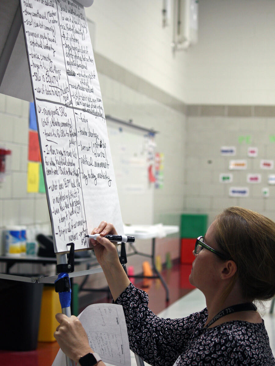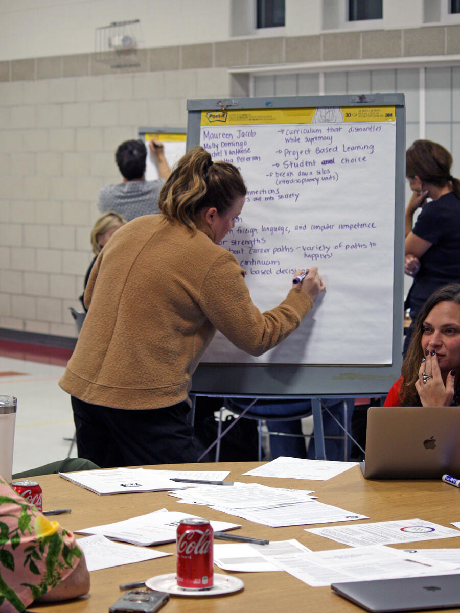 In-person participants gathered in mixed tabletop groups and spent time getting to know others at their table and in the room. The groups then shared and discuss ideas from different vantage points.