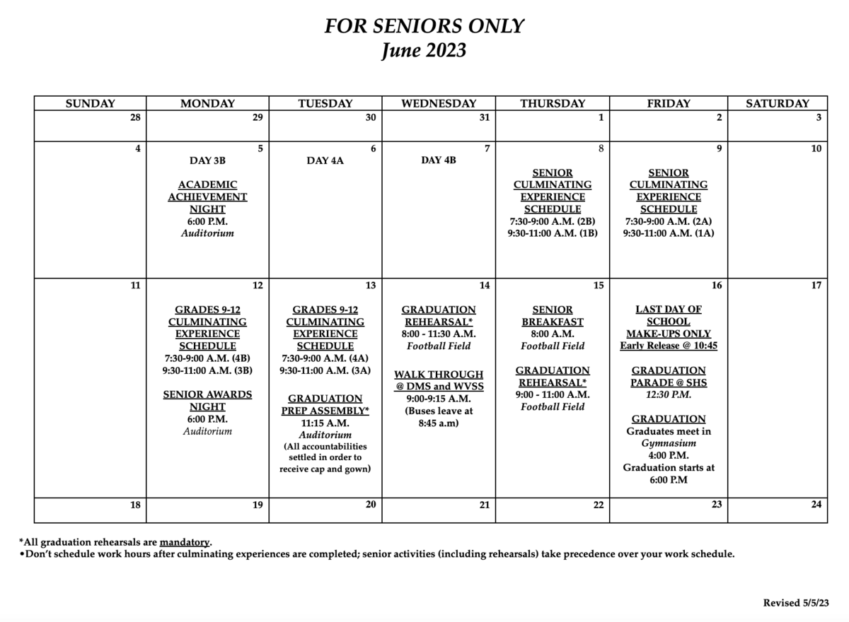 *Please review the June calendar below. Please note, the week of June 12, (culminating experience week) students will be dismissed at 11:00 AM! Buses are provided!