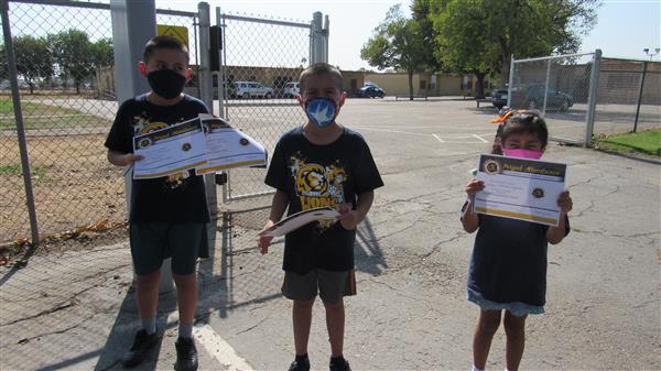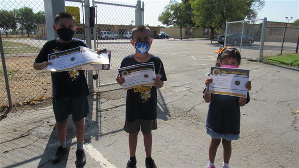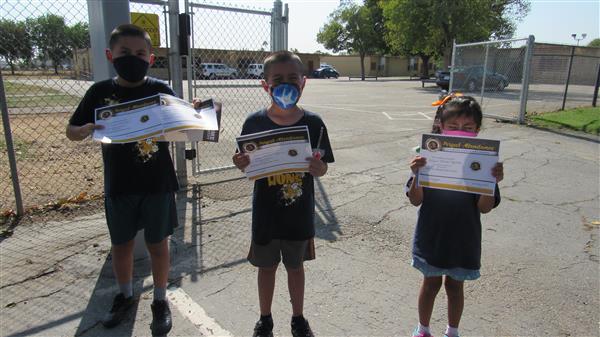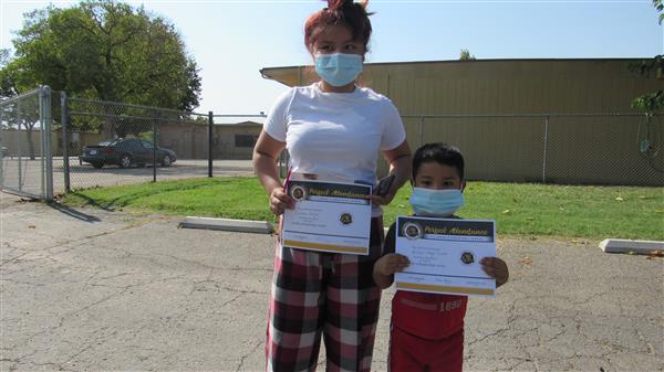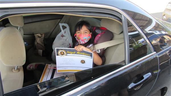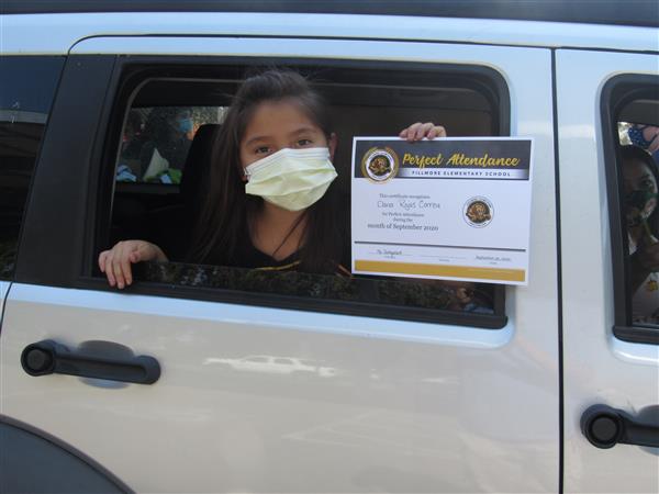 Fillmore held a "Drive Thru" for Perfect Attendance certificates and Spring Board Books/backpacks in the Fillmore Staff parking lot on Friday, October 16th. With over 100 cars lined up, for 300 qualifying students, parents drove up and walked in with their children to the staff parking lot to receive their perfect attendance certificates and other gifts while wearing masks and observing social distancing. Teachers, school counselors, librarian, and school administration were on hand to help distribute certificates and backpacks to our deserving students! Congratulations Fillmore Lions! It was so amazing to see all our wonderful students! We miss seeing you in person!