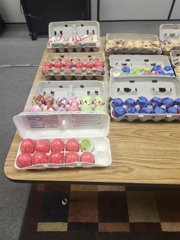 Durante marzo, junto con otros padres voluntarios, decoramos huevos de Pascua para los alumnos de kínder. Actualmente, estamos haciendo y decorando piñatas que sortearemos en cada salón de clase. Durante el mes de mayo, organizaremos un baile escolar para nuestros estudiantes de octavo grado que pasarán a la escuela secundaria. También entregaremos premios especiales a estudiantes seleccionados durante la ceremonia de promoción de octavo grado.