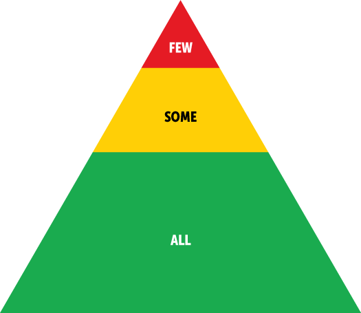 In addition to your Tier 1 foundation, students receiving Tier 2 supports get an added layer of systems, data, and practices targeting their specific needs. On average, about 10-15% of your students will need some type of Tier 2 support. The support you provide at Tier 2 is more focused than at Tier 1 and less intensive than at Tier 3. Tier 2 practices include: