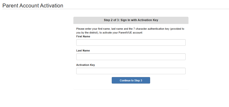 If you have an existing student(s) in the district and need to enroll additional student(s), or if you are re-enrolling a student who was previously in the district, please use your current ParentVUE account to complete the registration.