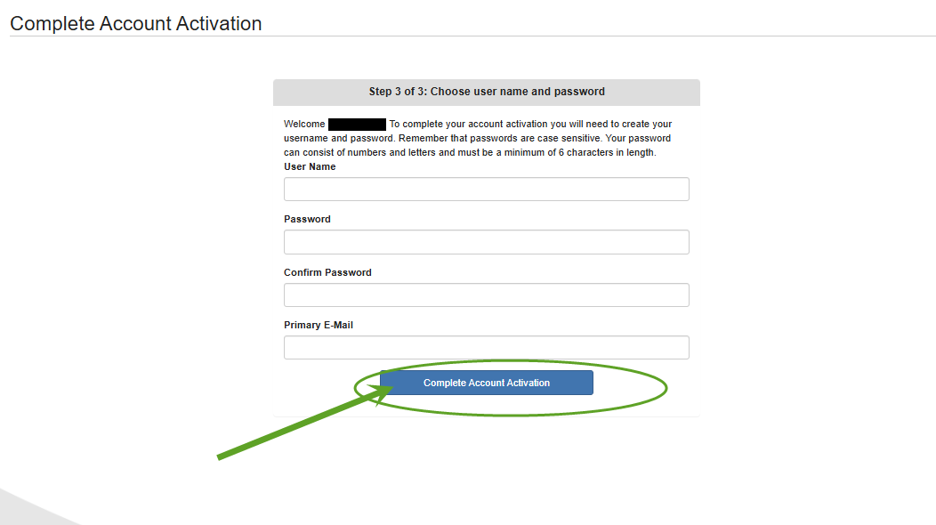 - Step 3 of 3: Continue to complete the field and click: "Complete Account Activation".