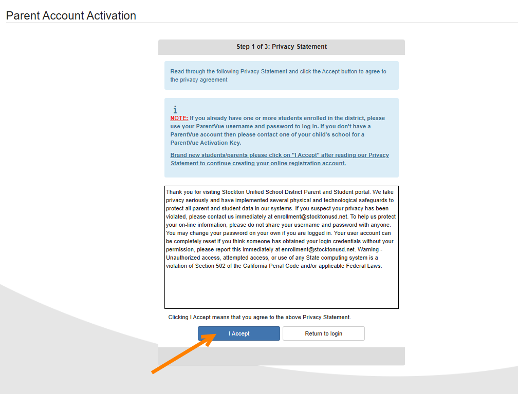 - Please read through the Privacy Statement and click "I Accept".
