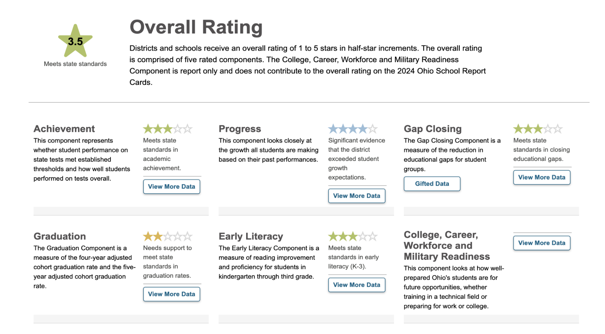 1. Achievement: 3 Stars: This shows how well students are performing on state tests compared to the standards set by Ohio. Tecumseh Local Schools earned 3 stars, which means we’re meeting state expectations in this area, but there is room for improvement.