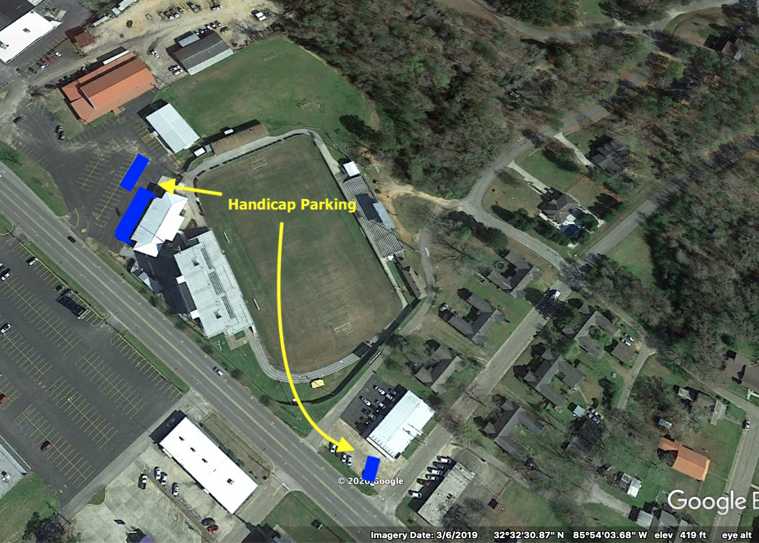 - Handicap parking is provided at both gates; however, most of the allotted spaces are on the north side. If you require a space and are from the Reeltown fan base, please feel free to utilize the spaces and you may enter the nearest gate.