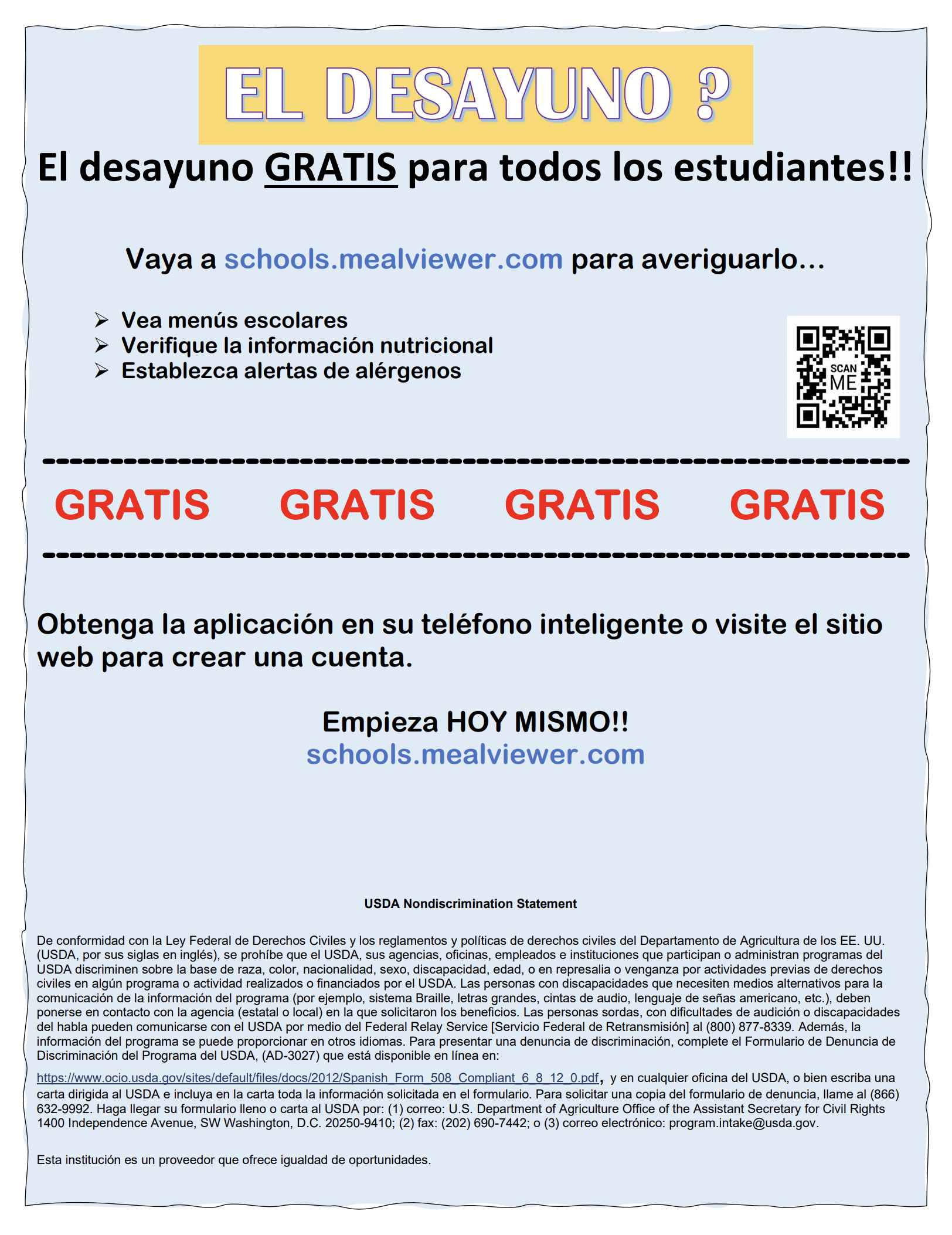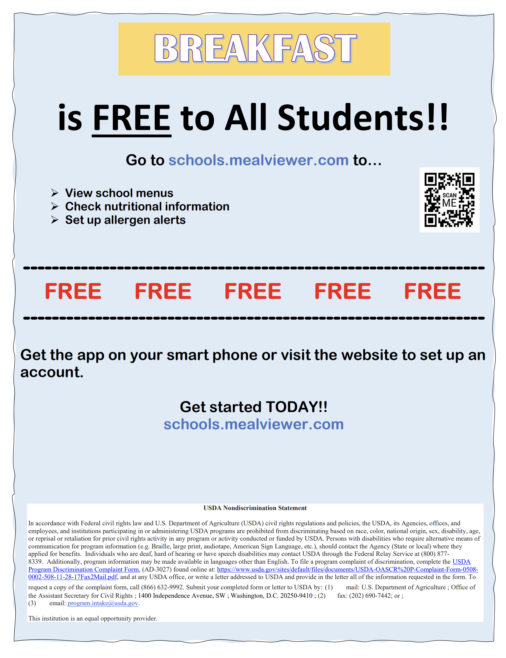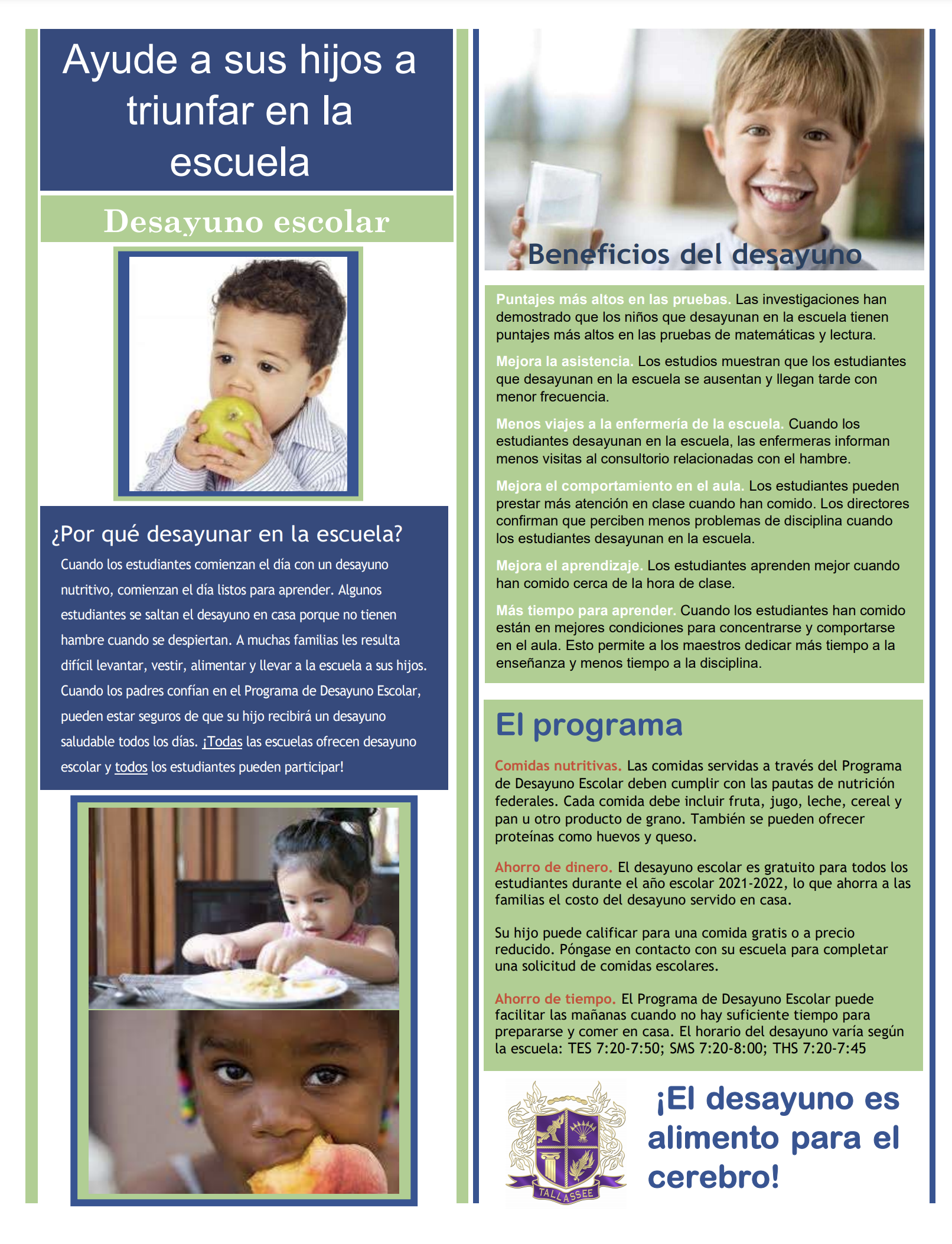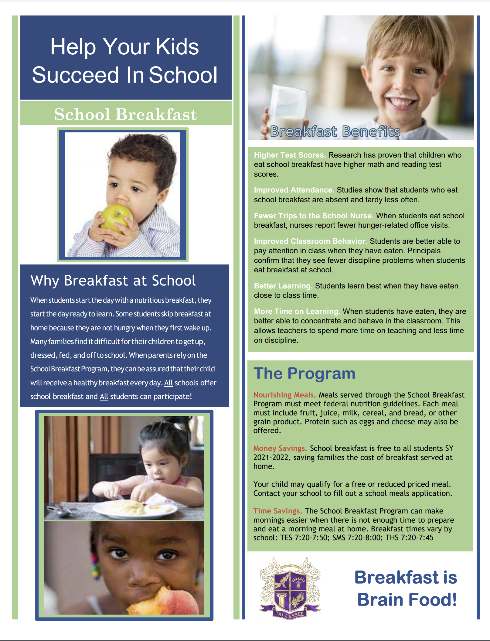 Breakfast is brain food! ALL TCS students can receive a FREE SCHOOL BREAKFAST!