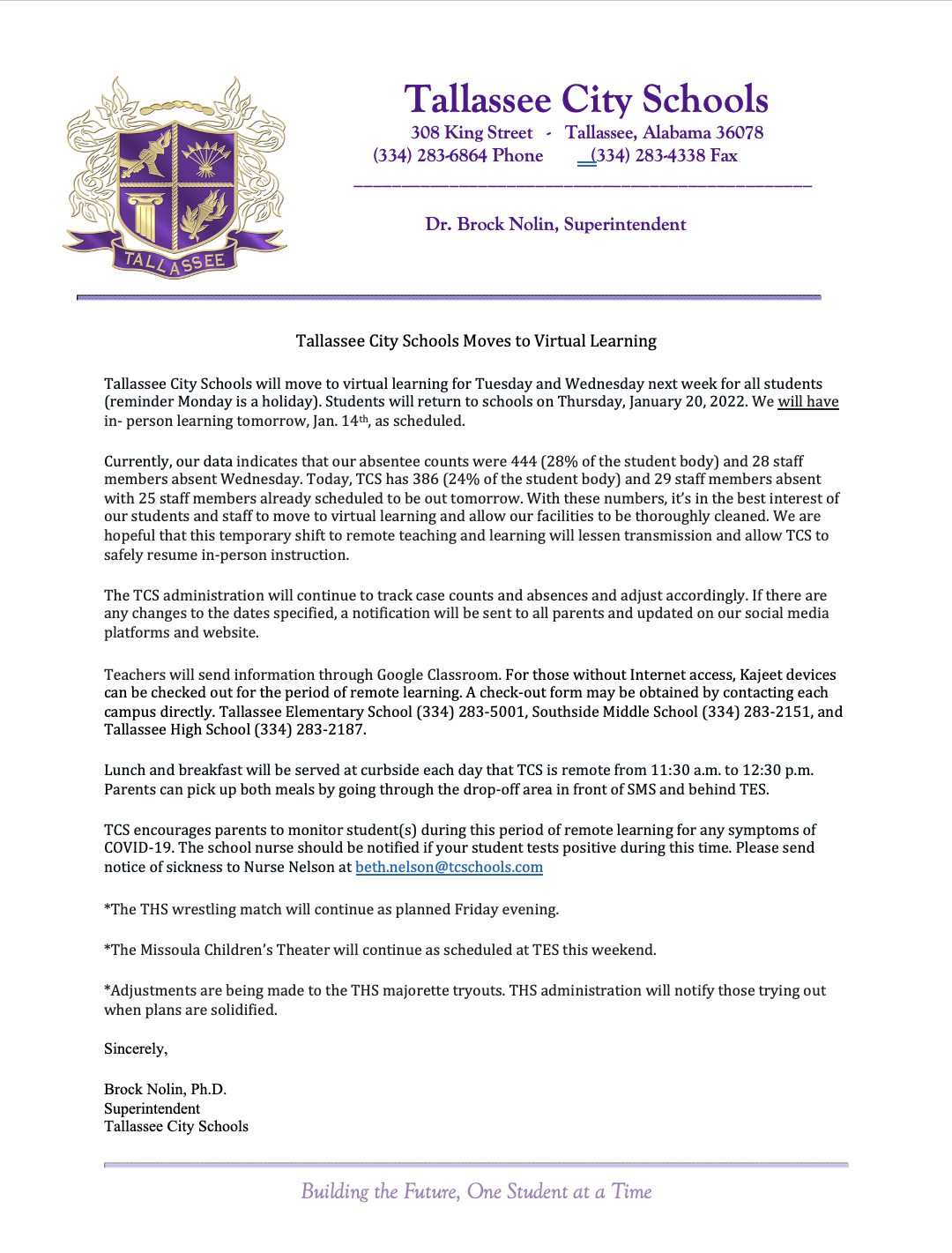 TCS moves to Virtual Learning for Jan. 18 an 19