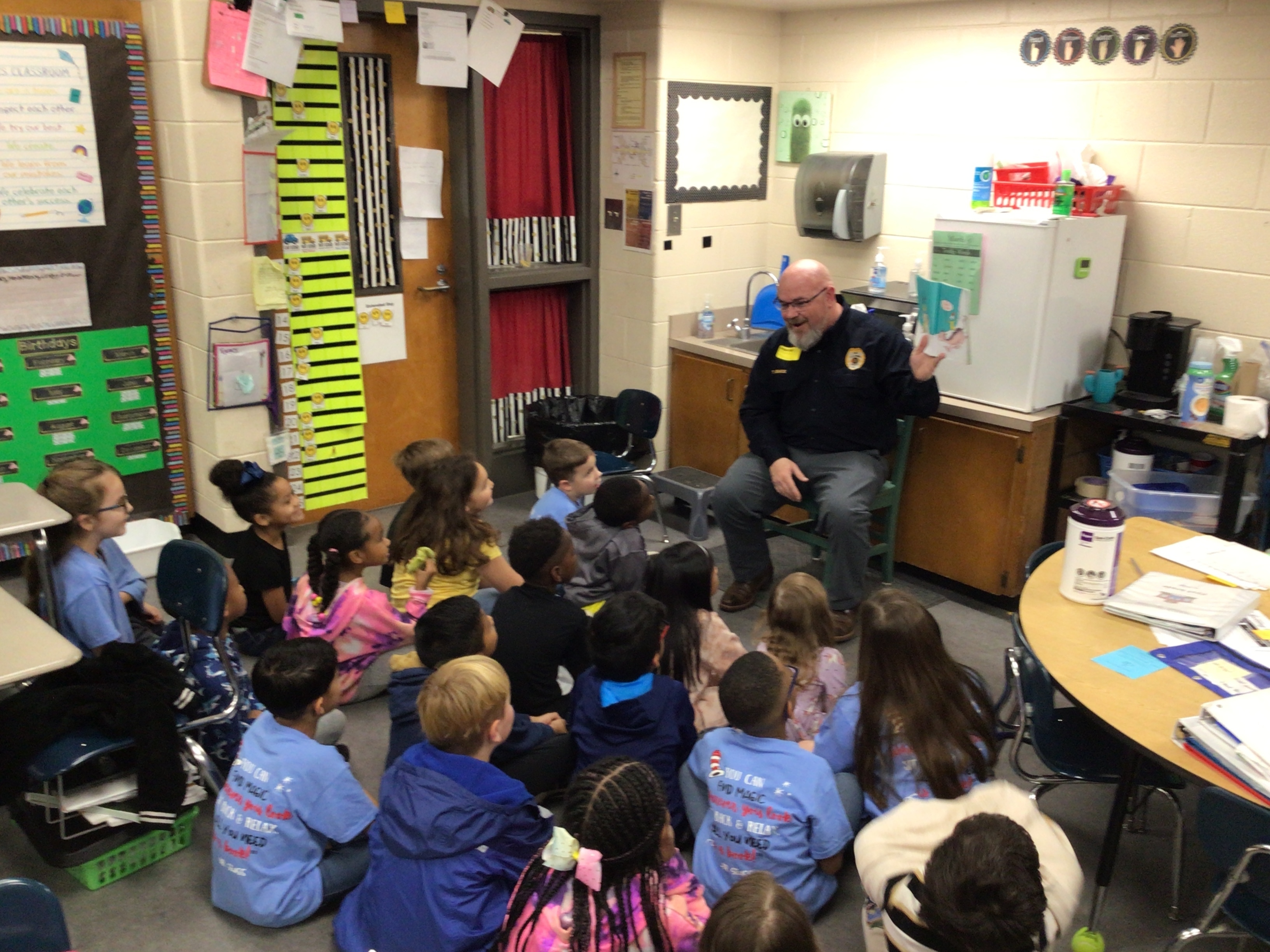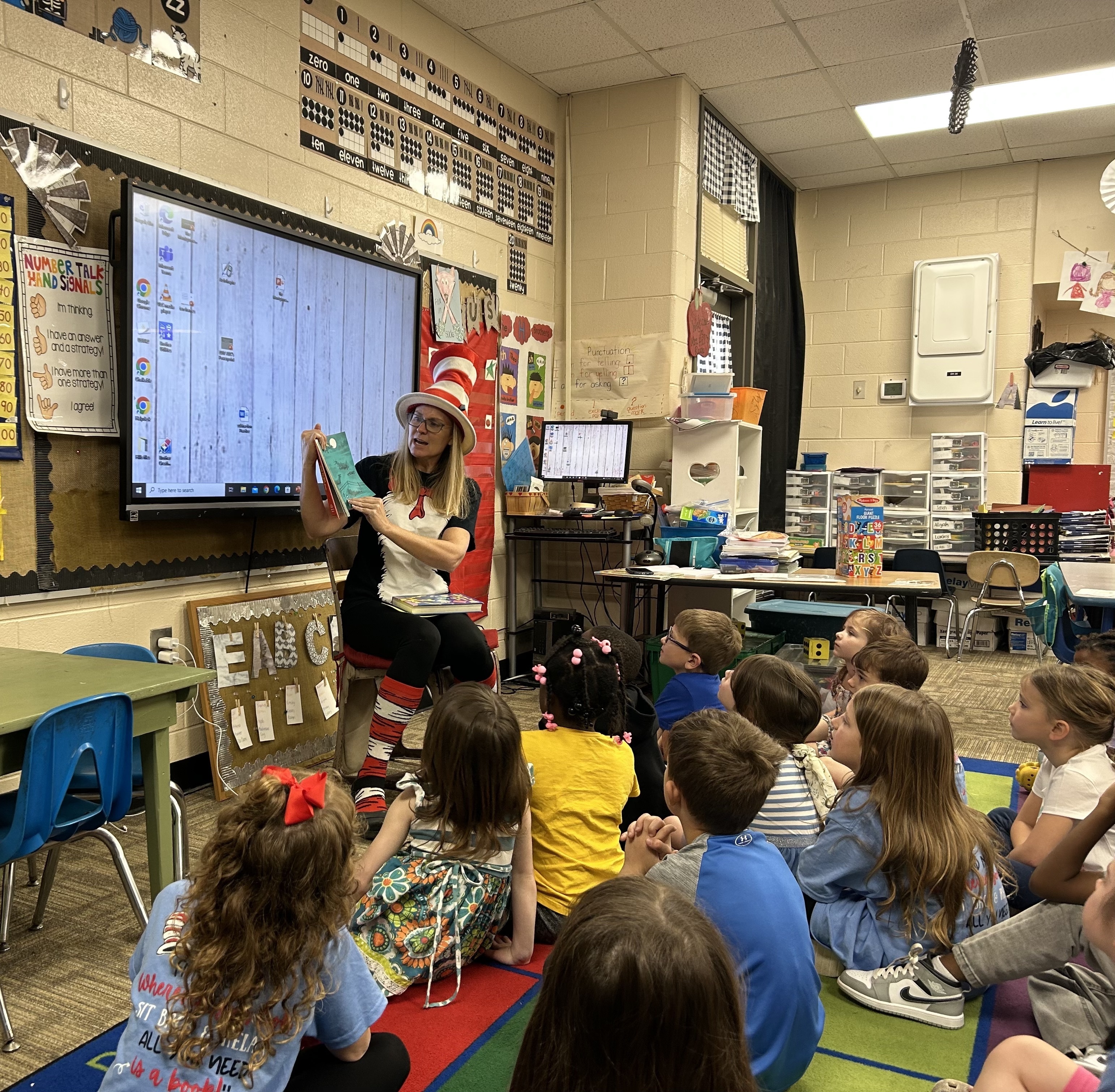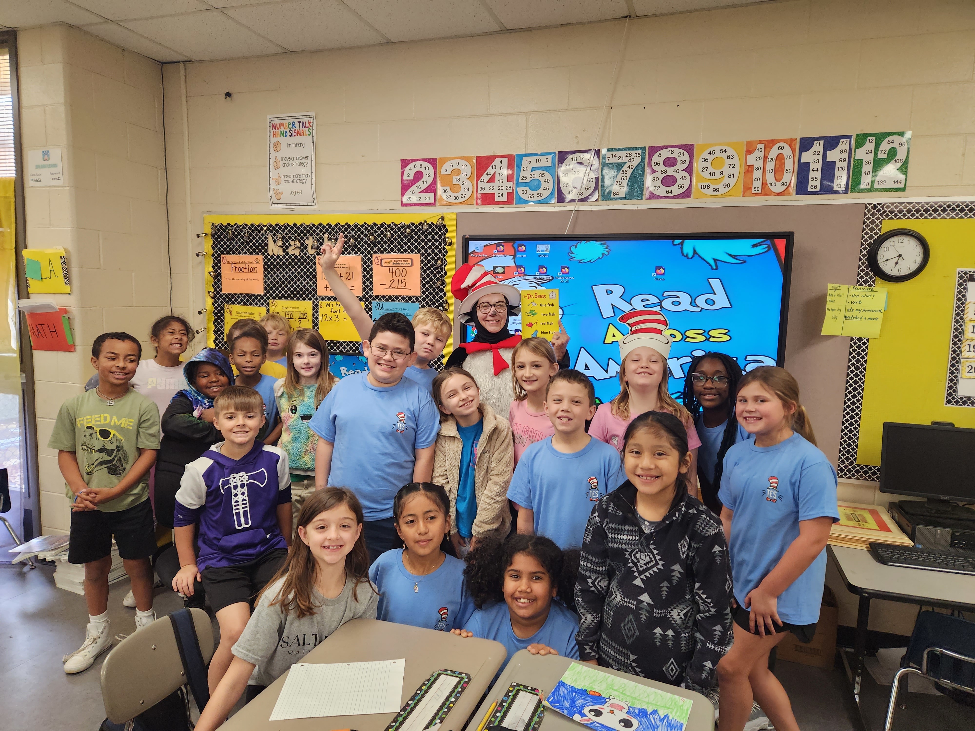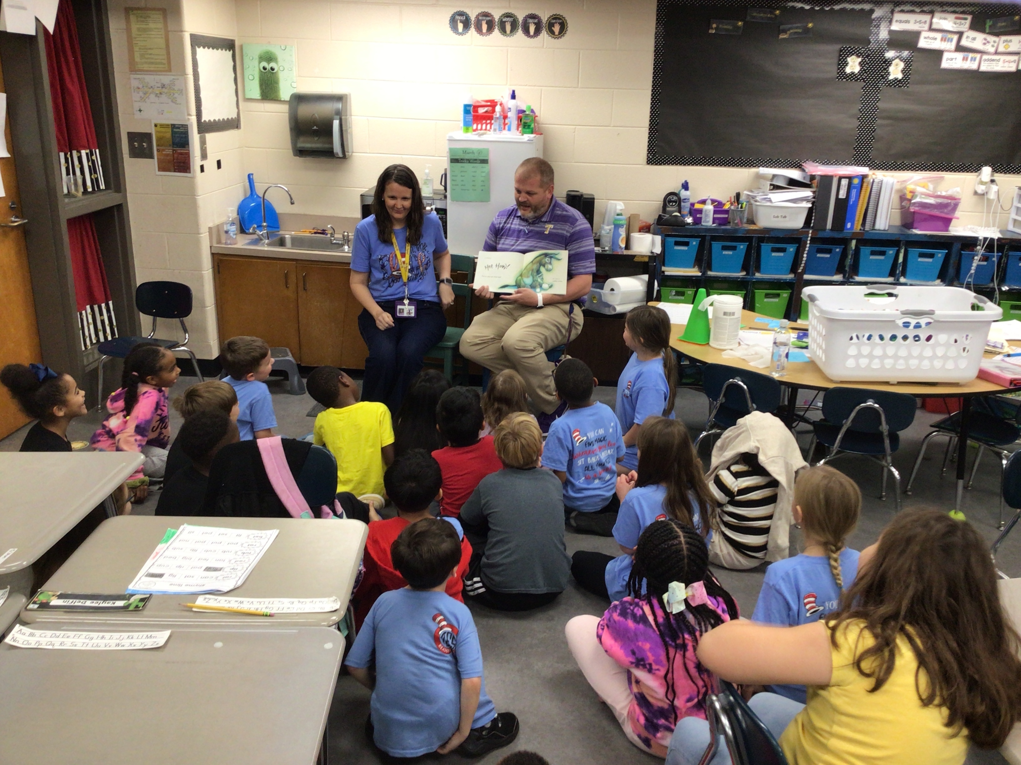 Dress up days consisted of Pajama Day, Favorite Book Character Day, Wacky Wednesday, Hat Day, and Dr. Seuss T-Shirt day! Students and teachers had a blast participating! We concluded this week with approximately 130 readers who visited our classrooms and made our day full of wonderful books and activities!